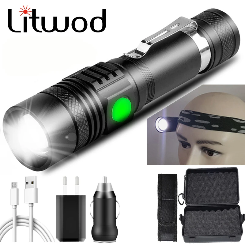 Фонарик XP-L V6, алюминиевый светодиодный, перезаряжаемый по USB, водонепроницаемый, с аккумулятором 18650
