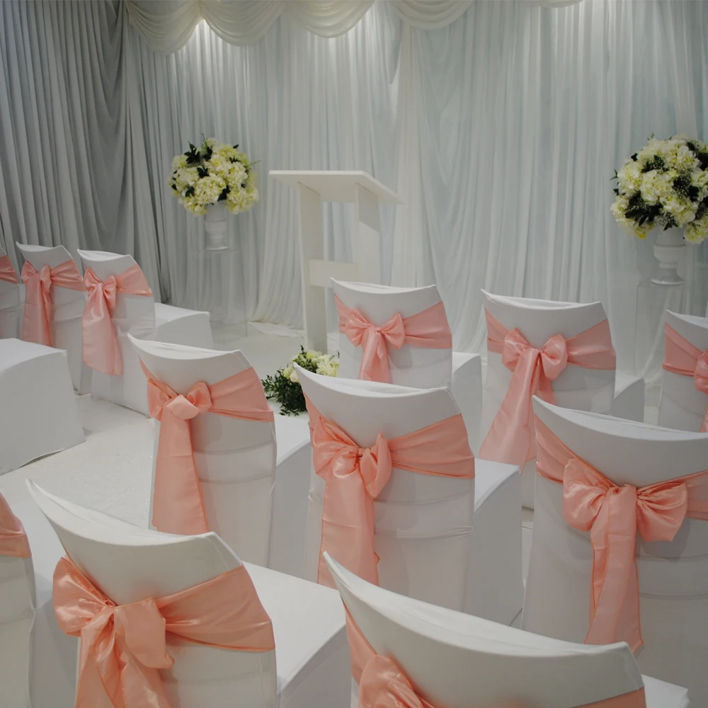 25 шт. ленты для свадебных стульев вечерние Сатиновые чехлы для стульев золотисто-розовые Чехлы для банкетов 15x275 см 22 цвета