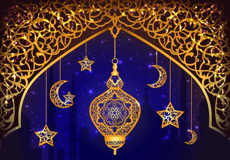ИД Мубарак Рамадан вечерние фон для фотографирования с рисунком Луна, Звезды дворец фотографии Фоны фотосессия фотостудия фон-реквизит украшения баннер