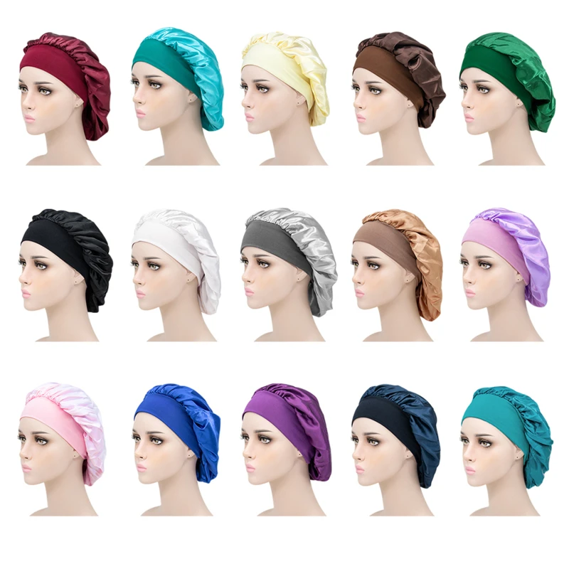 Карамельный цвет шапки с широкими полями, эластичные ночные унисекс модная Непромокаемая ткань Уход за волосами красота шапочка для душа из сатина шапочка для химиотерапии