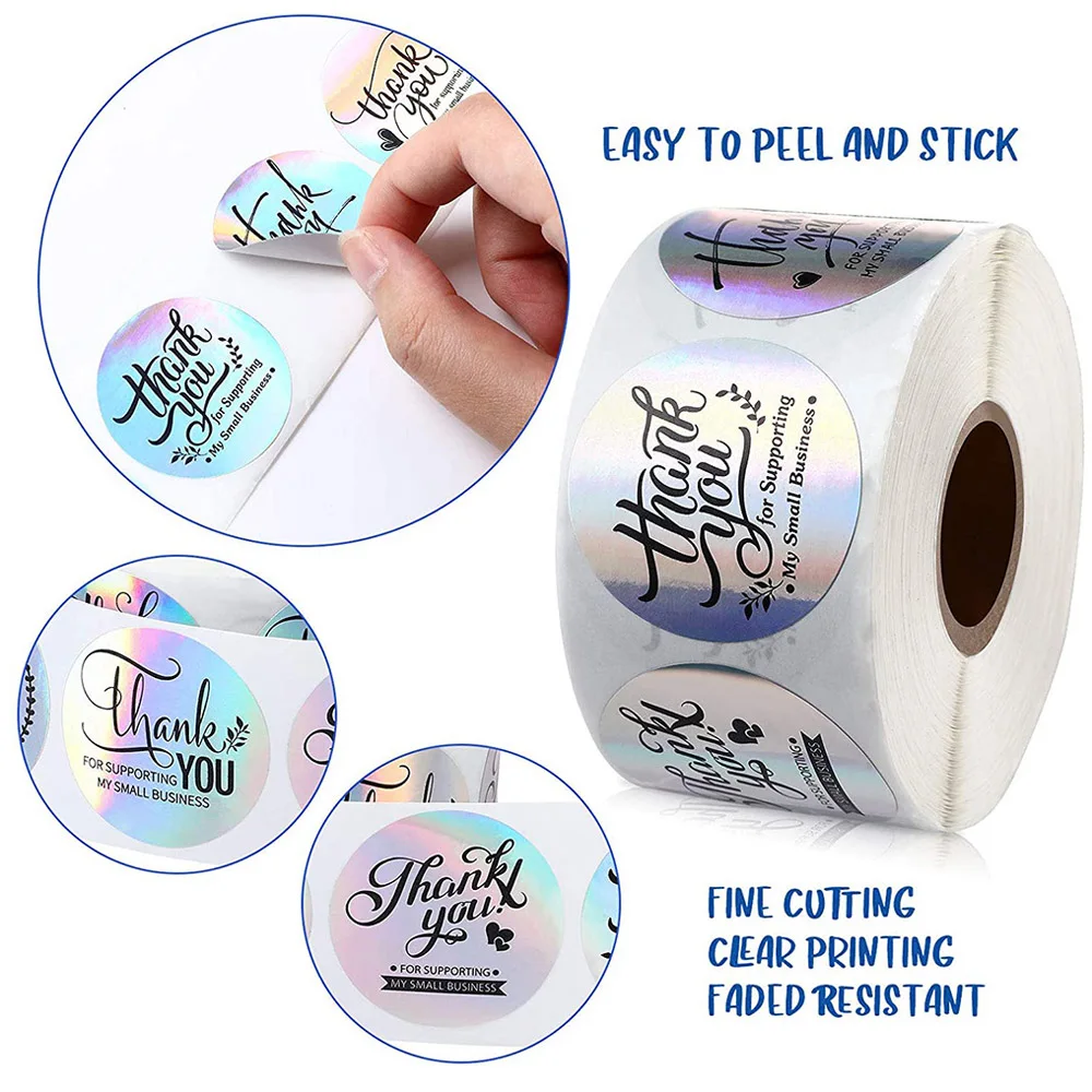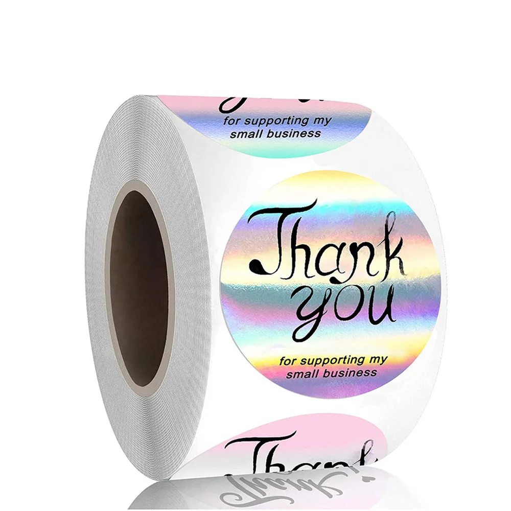 25 мм радужные лазерные наклейки спасибо маленькие деловые наклейки 50-500 шт. клейкие этикетки для бизнеса бутиков упаковочные принадлежности