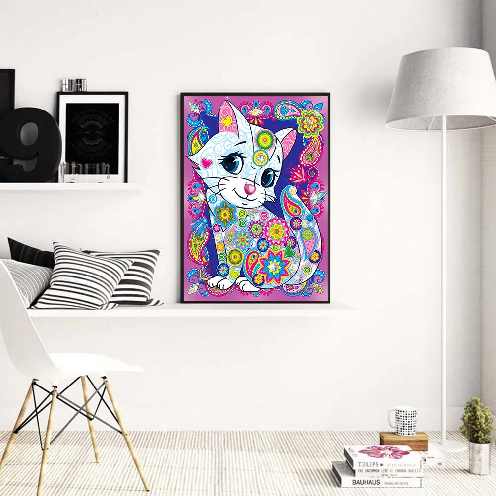 Полностью круглая алмазная живопись сделай сам, кот, птица, мультяш...
