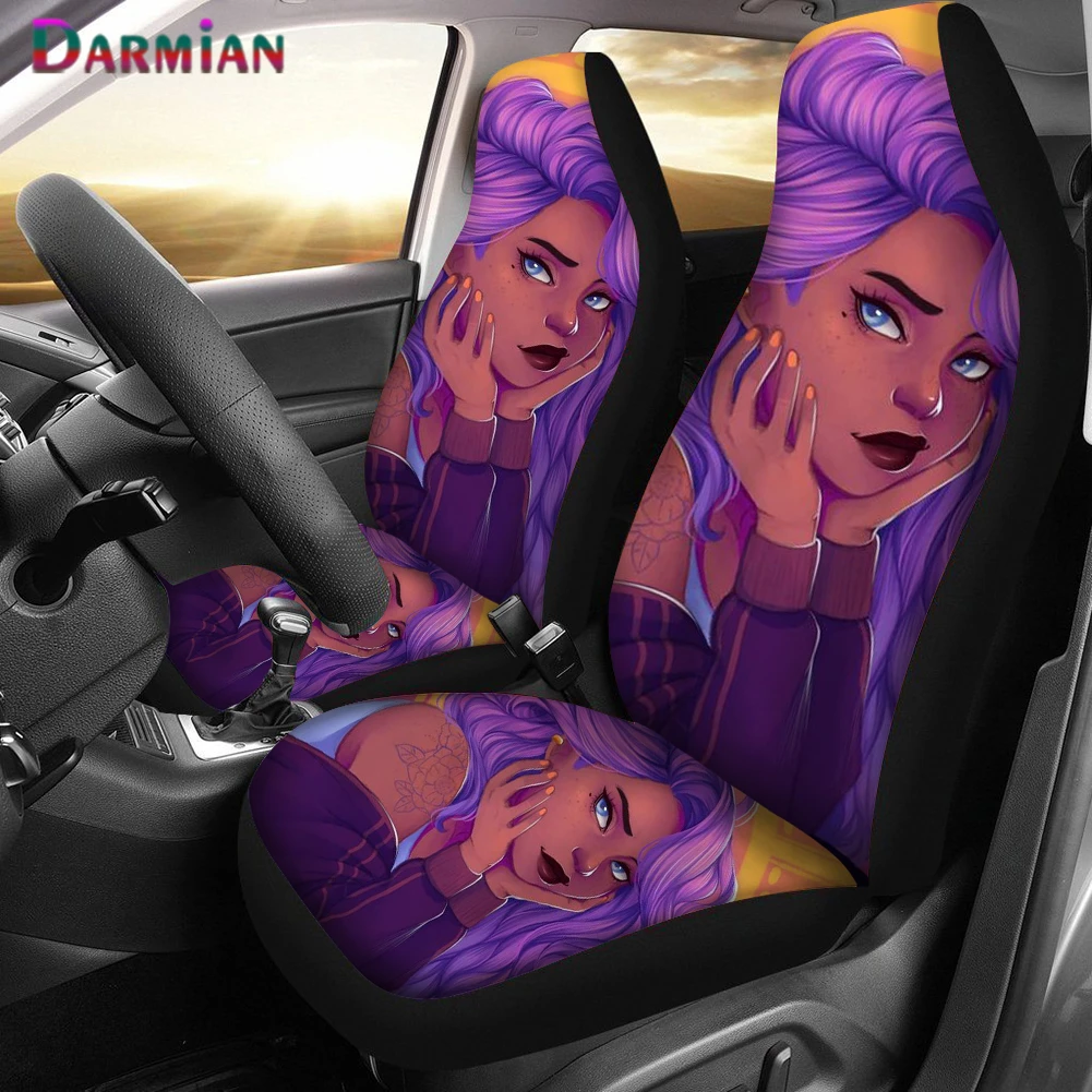 Чехлы для автомобильных сидений DARMIAN, изящные дизайнерские Нескользящие накидки на сиденья автомобиля, с фиолетовыми волосами, комплект из 2 предметов