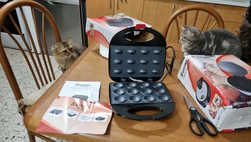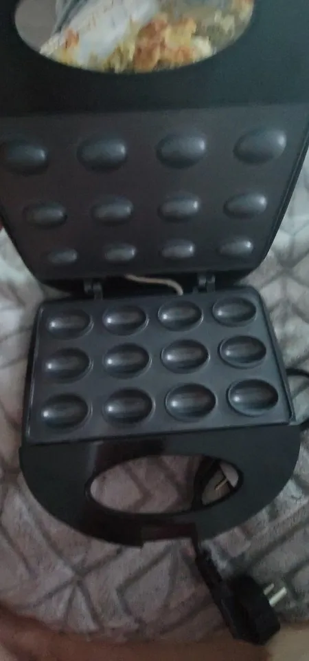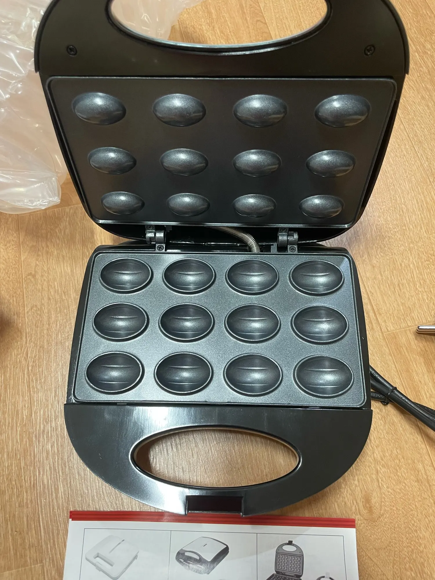 Вафельница простая, пластик, легкая. Поверхность для приготовления орешков местами бугристая и даже поцарапанная, но это не повлияло на приготовление орешков. Орешки очень мелкие, готовятся в вафельнице очень медленно, но получаются. У орешков почти нет полосок, как это было у нас в детстве. Нет инструкции именно для вафальницы. Если пару страниц о том, как пользоваться аппаратом для приготовления горячих бутербродов. Рецепта теста для орешков тоже нет. Шла вафельница очень-очень долго. Продавец на мой вопрос о поцарапанных ячейках ответил, что это не царапины, а отблески света на фотографии. Было неприятно. Это царапины. Неприятно, что продавец так отреагировал. Но за то продавец предложил отправить его назад товар и получить назад деньги. Я не буду ничего отправлять. Вафельницу оставлю. Но столько времени тратить на приговтоление мелких орешков у меня нет.