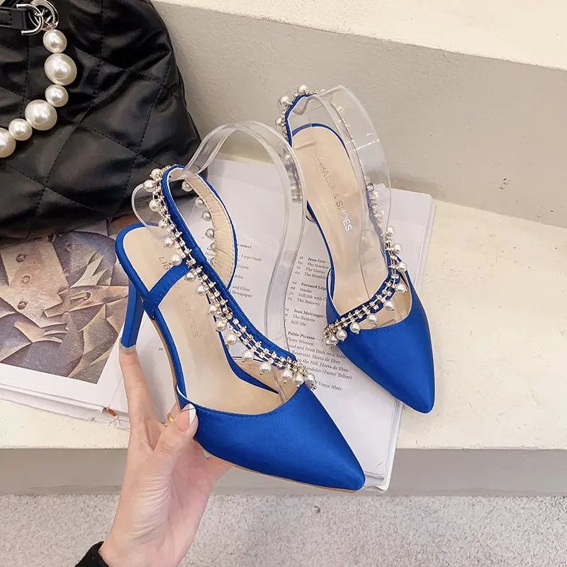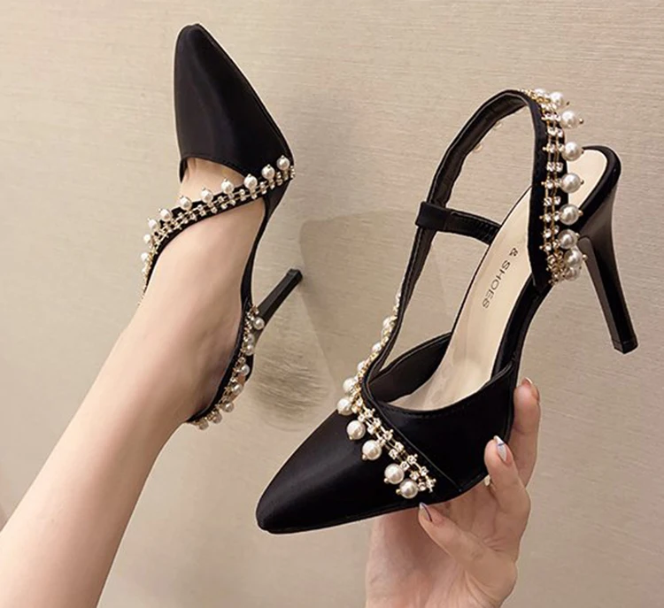 Туфли женские на шпильке, с острым носком, с жемчугом