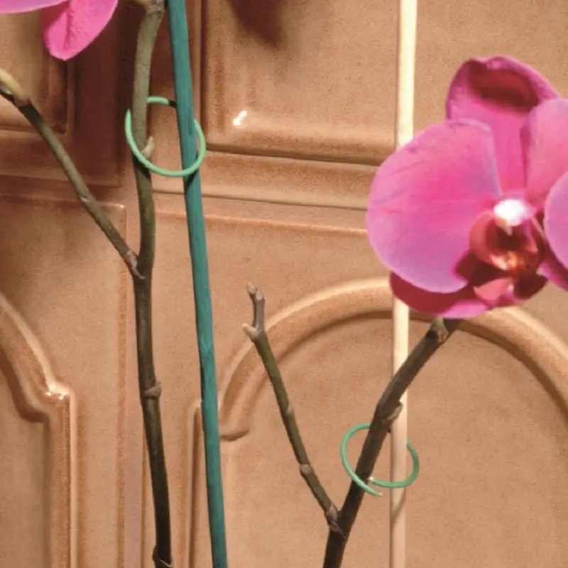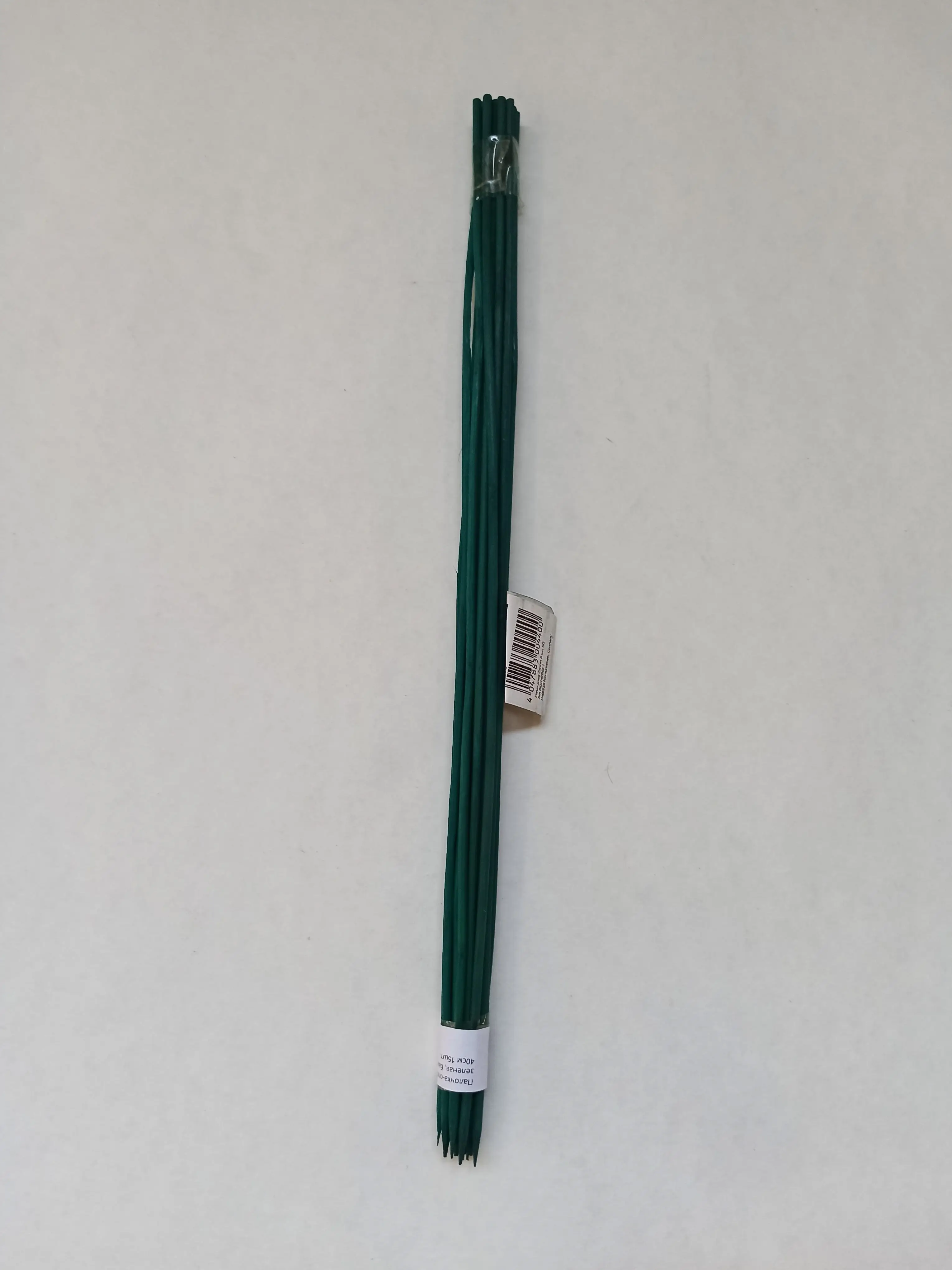 Палочки для крепления цветов и растений, высота 40 см, диаметр 3-3,5 мм, в комплекте 15 штук. Бамбуковые, крашенные, зеленые, с заточенным концом.