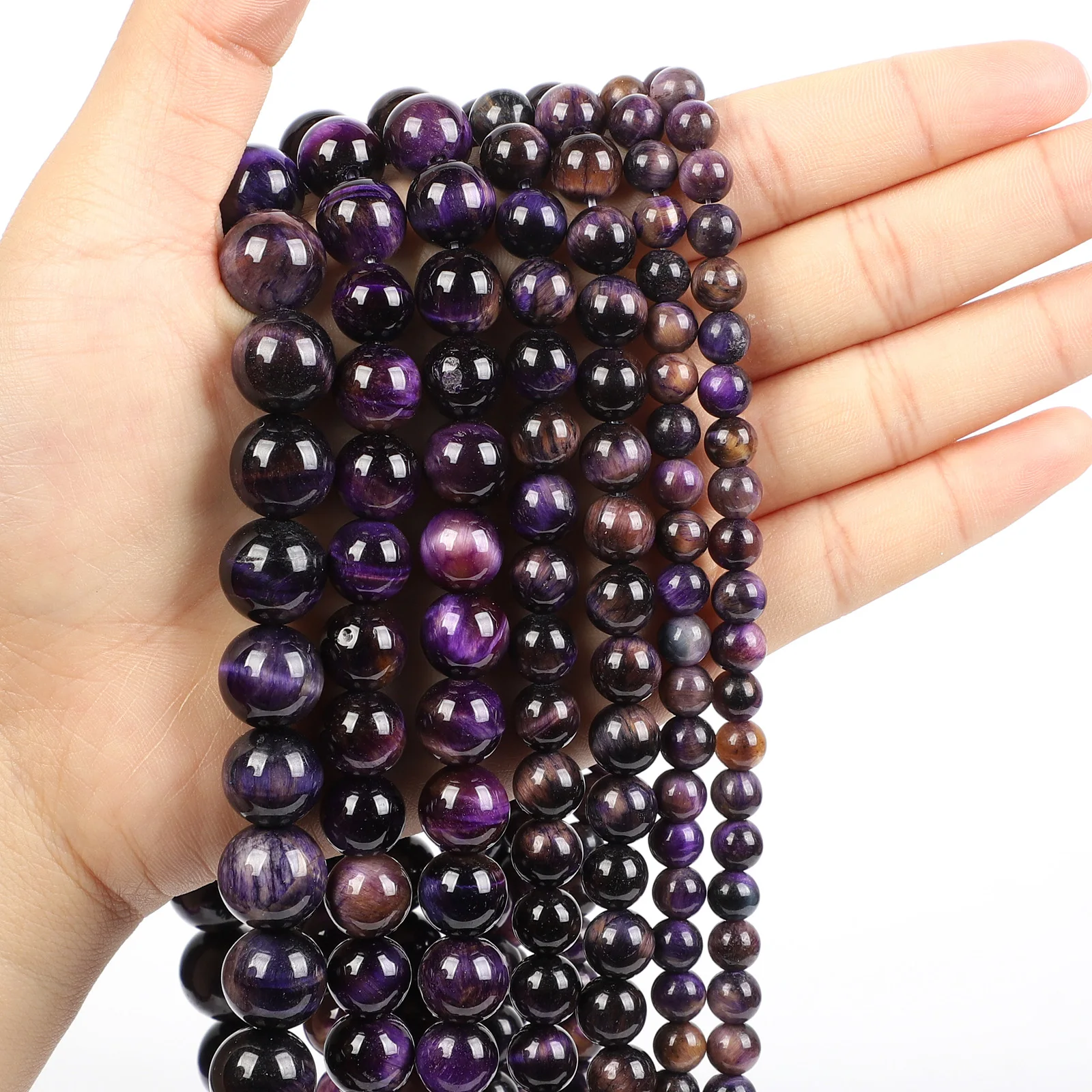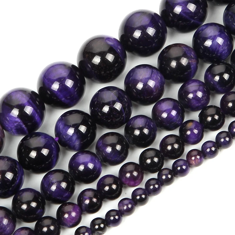 Бусины из натурального камня, фиолетовый тигровый глаз, круглые бусины россыпью для изготовления ювелирных изделий, рукоделия, браслетов, сделай сам, 4-12 мм