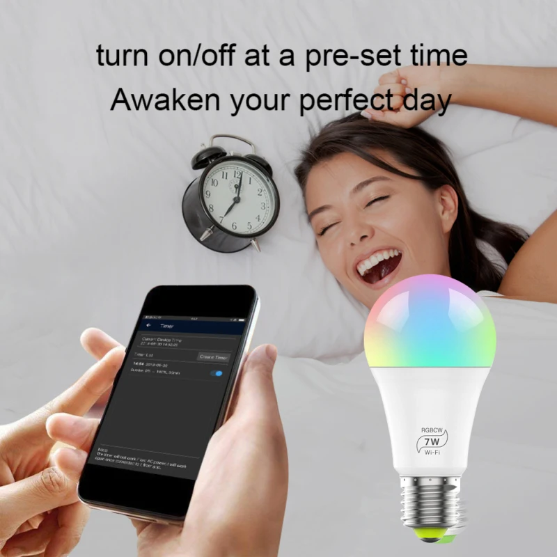 Умная Светодиодная лампа TUYA с Wi-Fi, 7 Вт, разноцветсветильник свет, E27, RGB, регулируемая яркость, поддержка Alexa, управление через приложение, Google Home