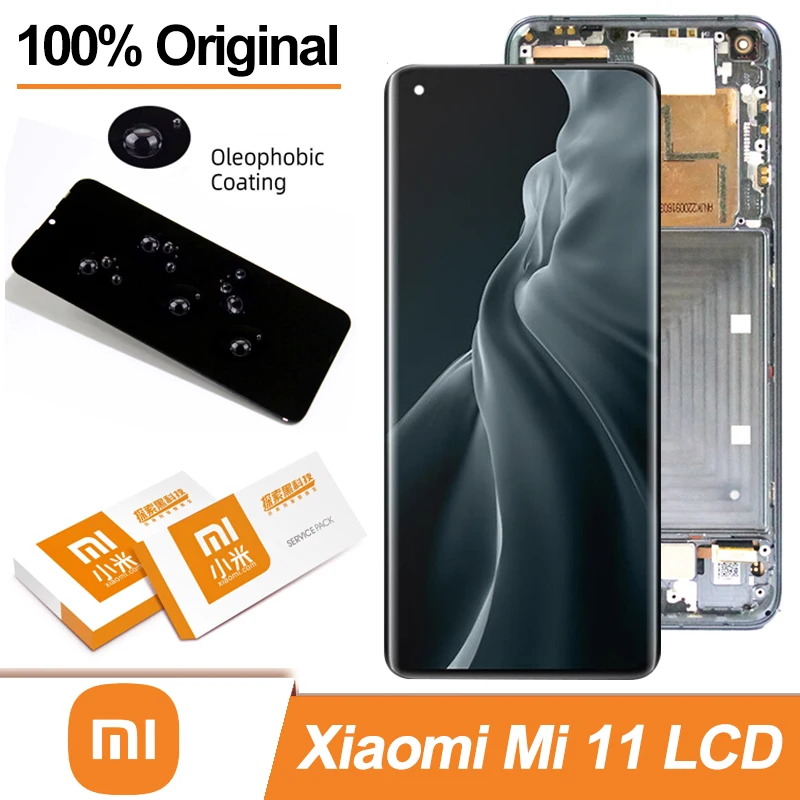 100% Оригинальный 6,81 "AMOLED дисплей с рамкой для XiaoMi Mi 11 Mi11 ЖК-дисплей с сенсорным экраном дигитайзер в сборе запасные части M2011K2C