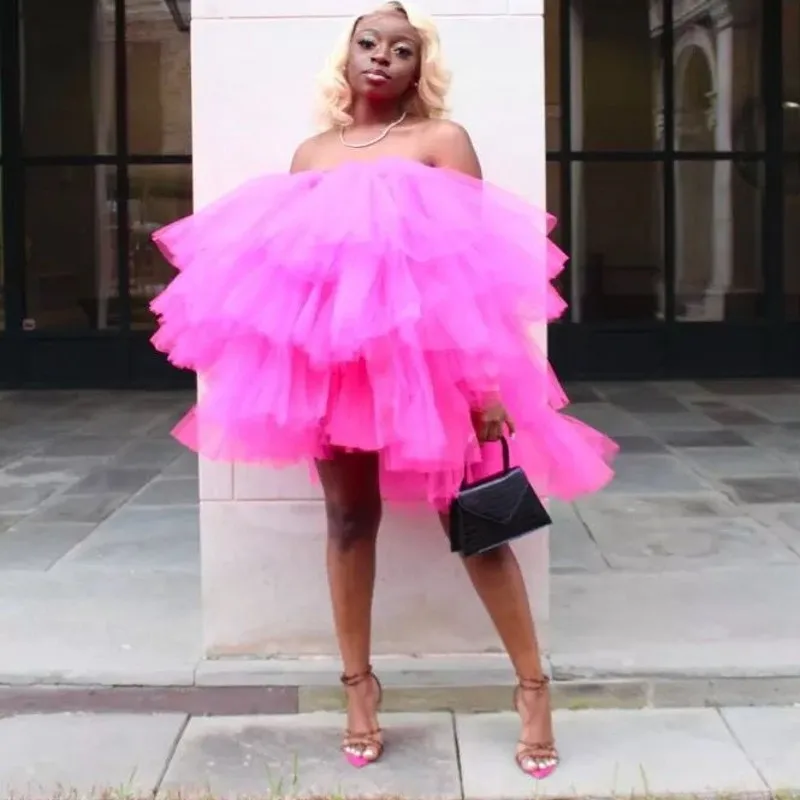 Фуксия покупатель показывает Пышное Тюлевое платье черные девушки в стиле High Street многоярусные женские платья бальное платье Пышное на заказ официальное платье