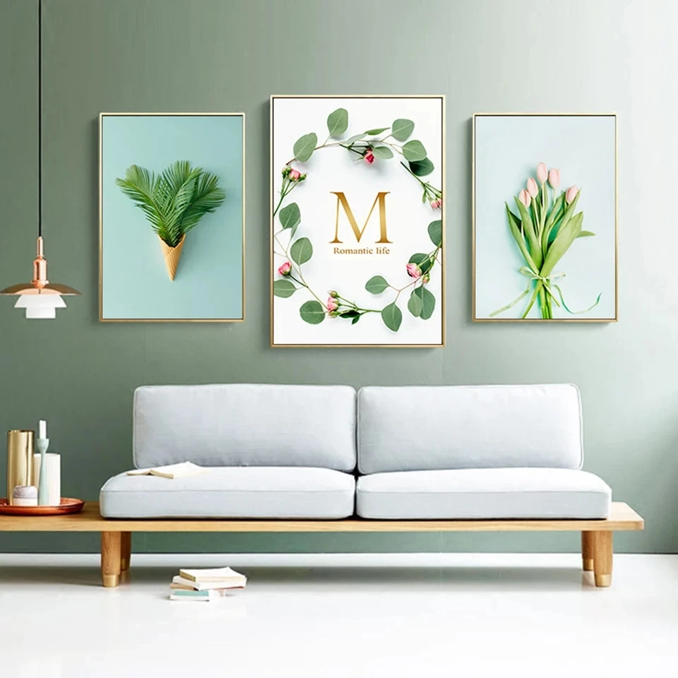 Свежий растение для украшения дома картины зеленые листья белые цветы Гостиная холст картины розовый букет Золотой текст постер на стену