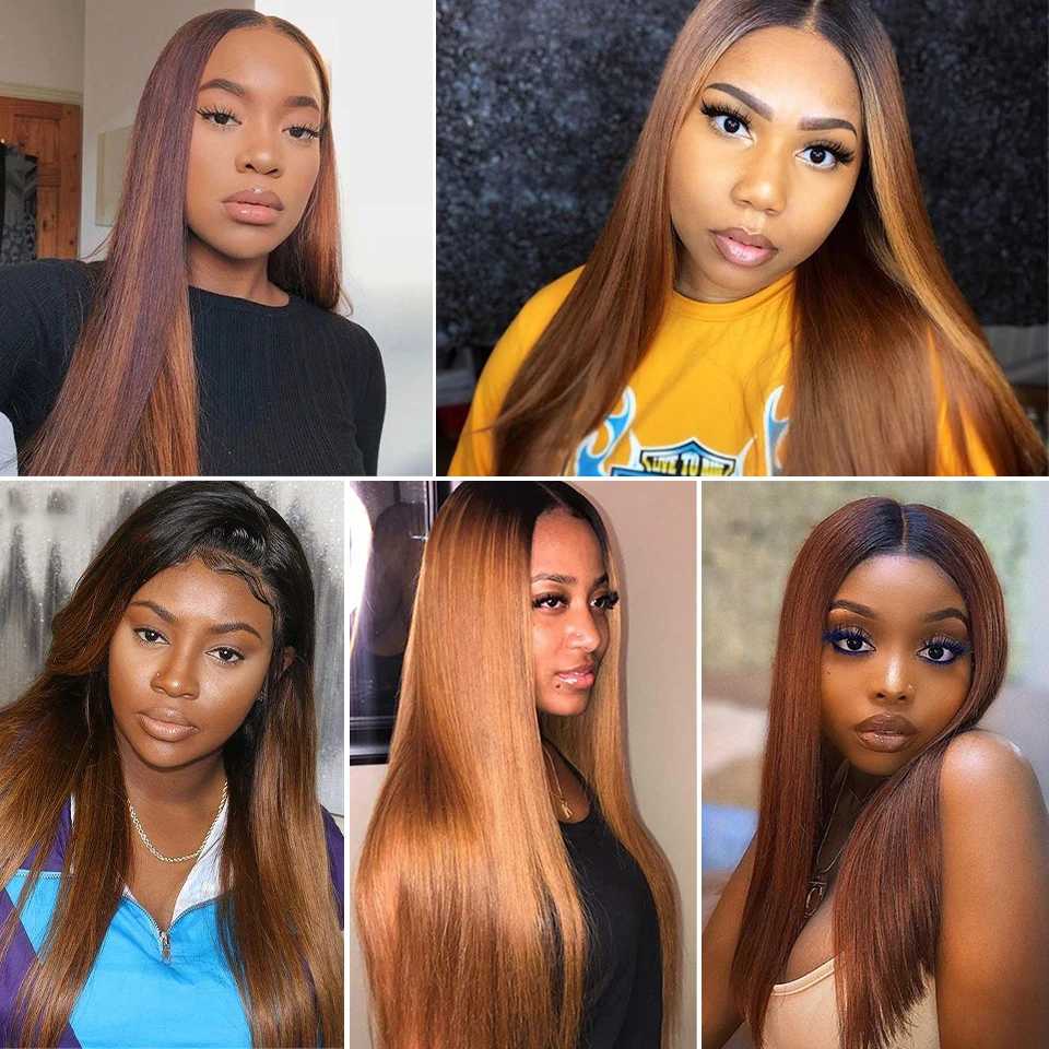 Парик Омбре из натуральных прямых волос T1B30 для женщин, предварительно выщипанные бразильские прямые волосы ALI ANNABELLE с застежкой 4x4, цветные