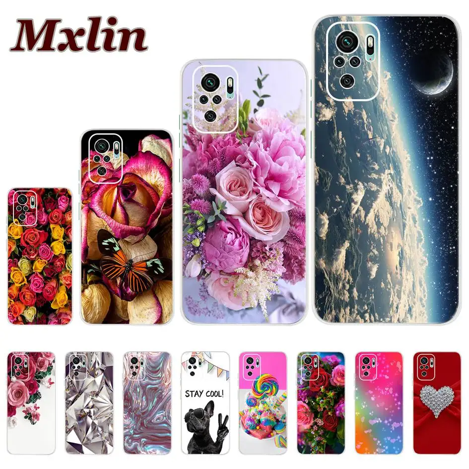 Мягкий ТПУ чехол для телефона Xiaomi Redmi Note 10 чехол с цветами Силиконовая задняя крышка для Fundas Redmi Note 10 Pro глобальная версия бампер