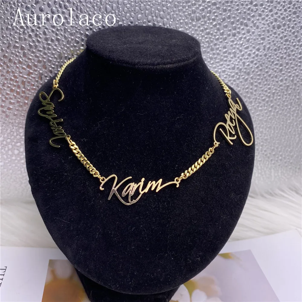 Авторское именное ожерелье AurolaCo, персонализированное кубинское ожерелье с несколькими именами, ожерелье с подвесками из нержавеющей стали и золота