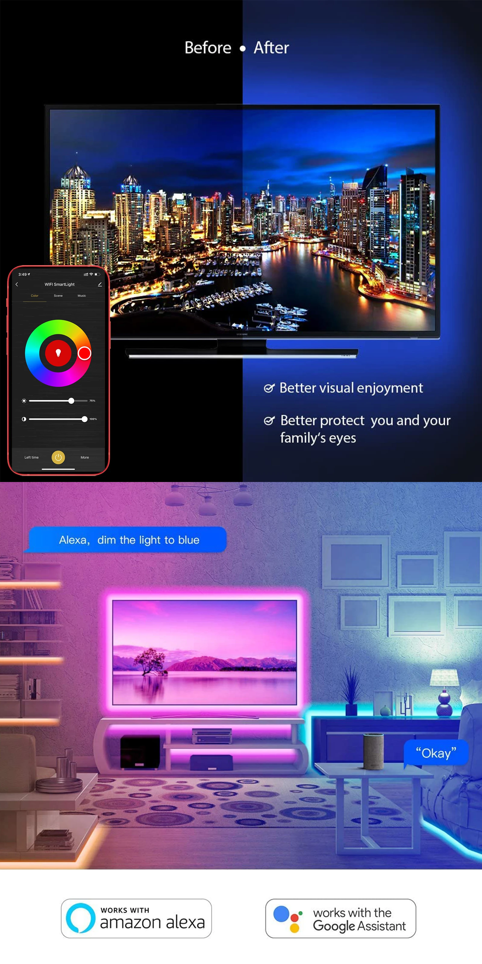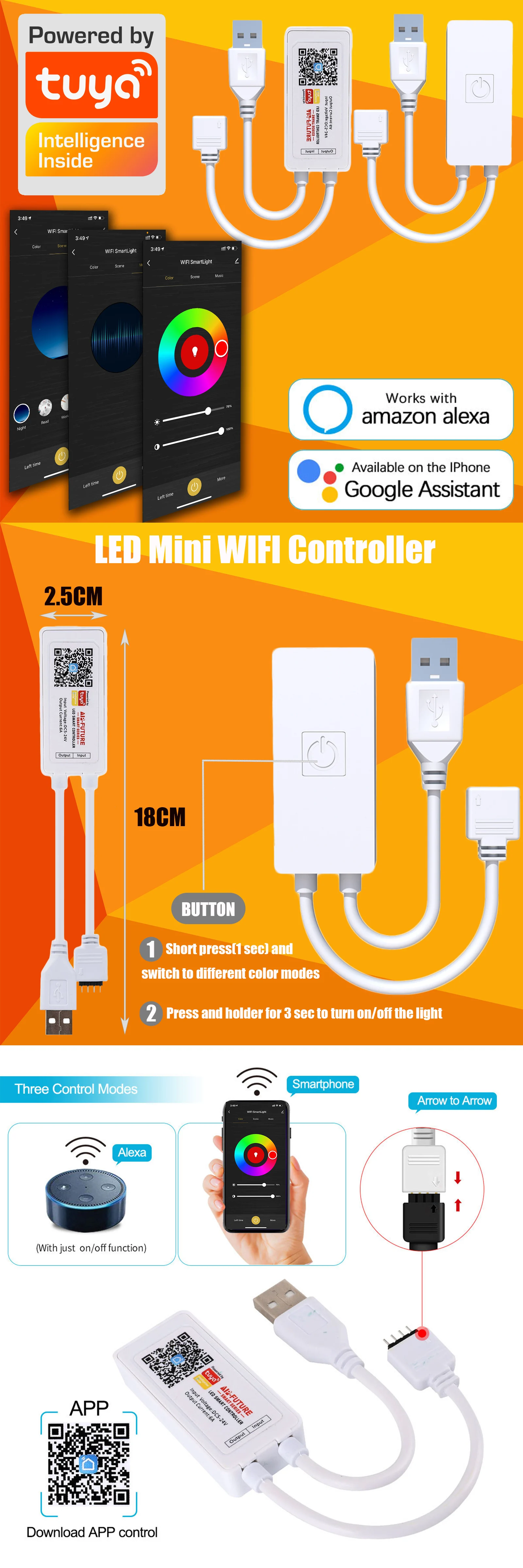 Светодиодные лентыТип: светодиодный ленточный светильник Tuya USB RGBВодонепроницаемый Тип: не водонепроницаемыйТип светодиодный: SMD 5050Количество СВЕТОДИОДНЫЙ: 30 светодиодный s/mСветильник Цвет: разноцветный "Красный-зелёный-желтыйНапряжение: 5 В 2 а постоянного токаХарактеристики: с l-образным разъемом 90 градусовСветодиодный контроллерКнопка: включение/выключение светильникНапряжение: 5 В постоянного токаПриложение: приложение Smart Life/TUYAПоддержка мобильных устройств: Android/iOSСистема поддержки: Amazon Alexa, Google Assistant, IFTTTУправление: Голосовое управление/кнопочное управление/пульт дистанционного управления с приложением-Поддержка Wi-Fi 2,4 ГГц 802.11b/g/n беспроводной сети. Поддержка дистанционного/локального управления через сети Wi-Fi 2G / 3G / 4G. Основной счет можно поделиться с другими счетами (только 6 мобильных телефонов).-Поддержка цветопередачи RGB с помощью вашего смартфона, вы можете персонализировать свои любимые цвета и настроить яркость на основе ваших потребностей. В то же время вы также можете настроить графики для включения/выключения в соответствии с заданным временем.Посылка:1 * Контроллер TUYA4 * ТВ светодиодный светильник3 * l-образный разъем8 * крепежные скобы8 * светильник с фиксированной наклейкой