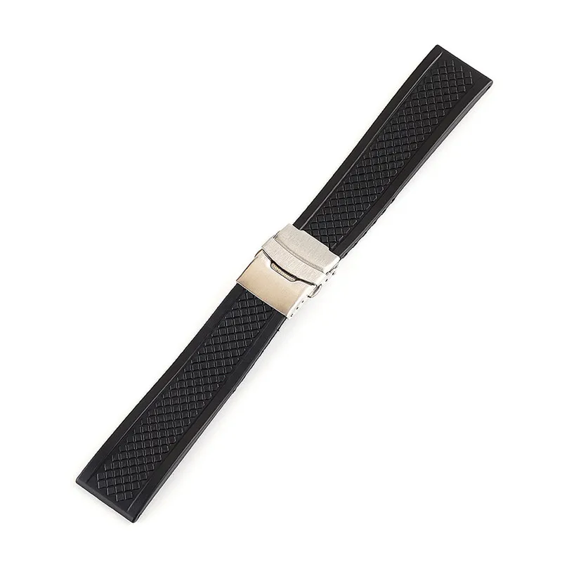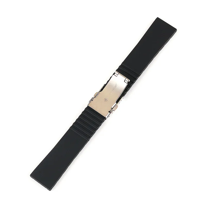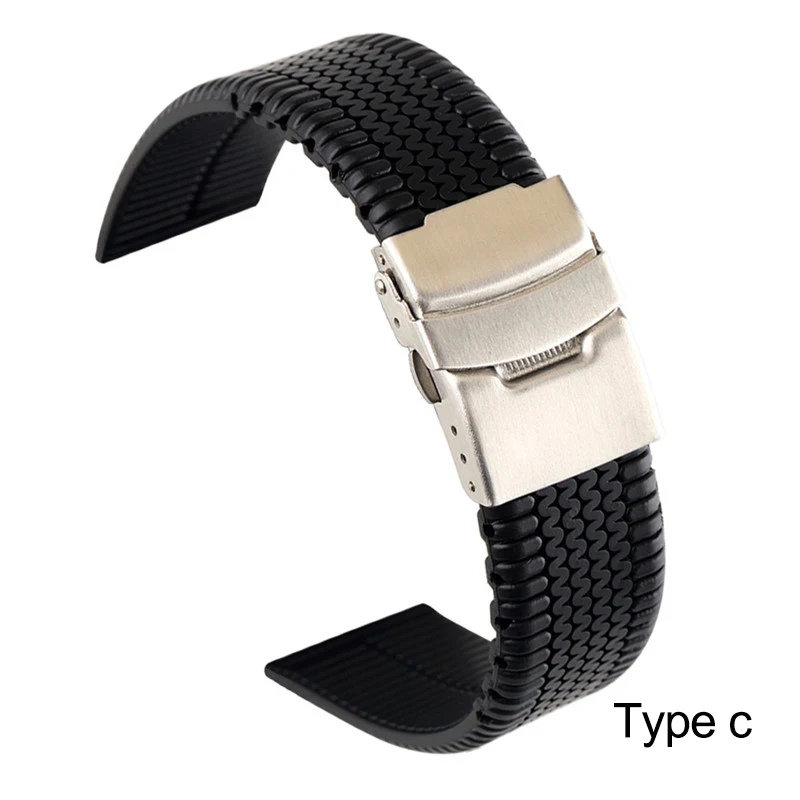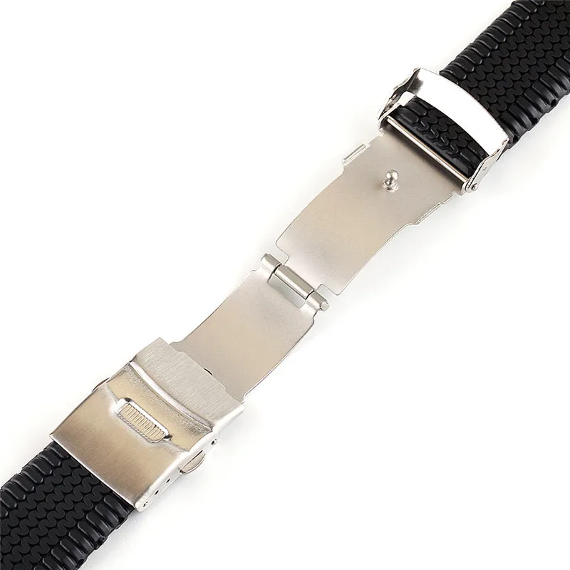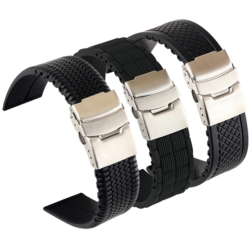 Ремешок силиконовый складной для мужчин, спортивный сменный резиновый браслет с безопасной водонепроницаемой застежкой, аксессуары для часов, 20 мм 22 мм 24 мм, черный