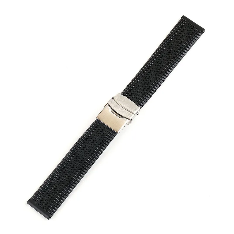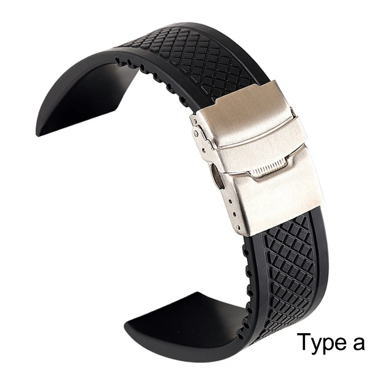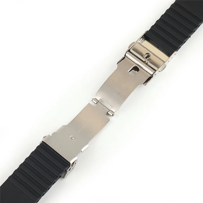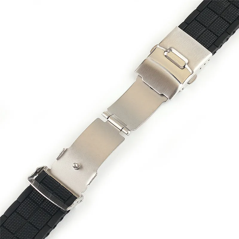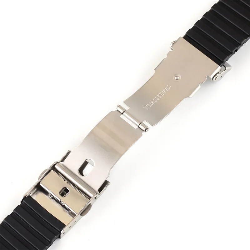 Ремешок силиконовый складной для мужчин, спортивный сменный резиновый браслет с безопасной водонепроницаемой застежкой, аксессуары для часов, 20 мм 22 мм 24 мм, черный