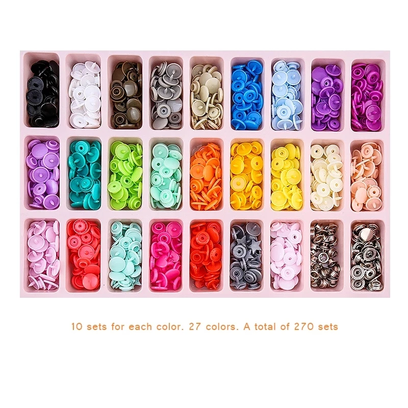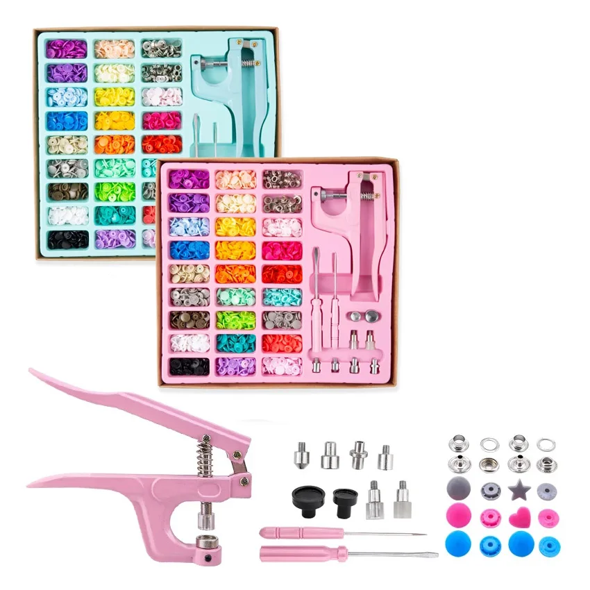 260 наборов кнопок с плоскогубцами, Пластиковые Крепежные кнопки с плоскогубцами, 40 наборов инструментов с втулкой, пластиковые металлические кнопки без швов для одежды, кошельков и шитья и рукоделия