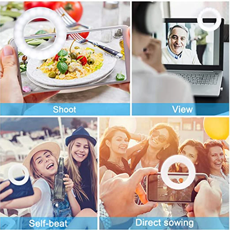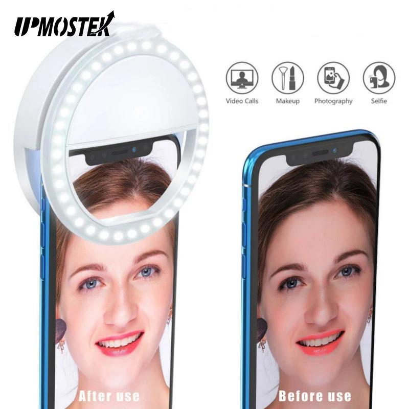 UPMOSTEK круглое кольцо Светодиодная лампа заряжается от USB, усиления Мобильный телефон линзы вспышки селфи кольцо свет клип для IPhone и Android телефонов