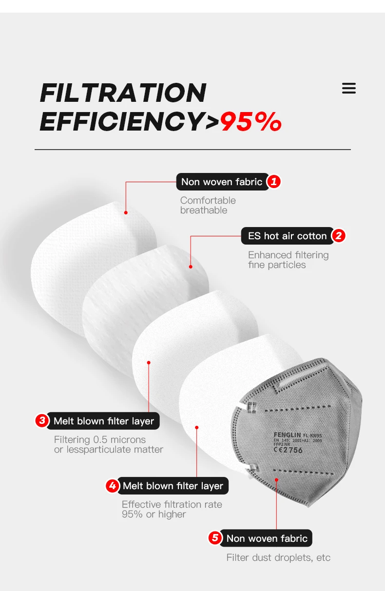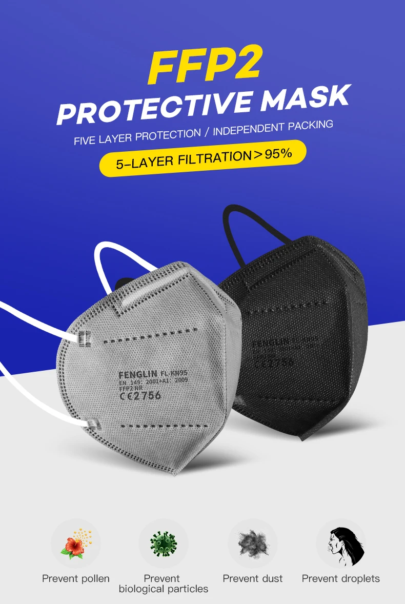 10-100 шт Одноразовые черные FFP2 KN95 маска респиратор Тканевая маска для лица Mascarilla маски для защиты от вирусов FPP2 одобренный маски