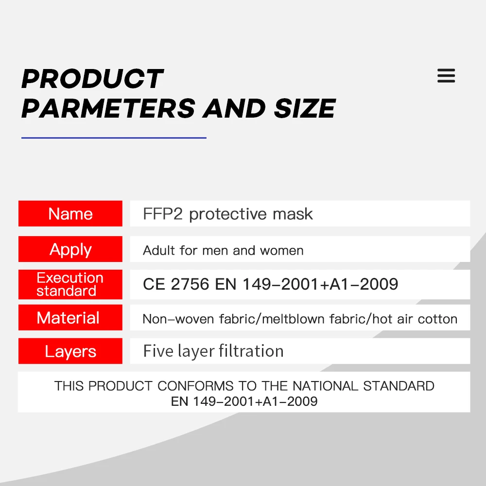 50 шт. FFP2 быстрая доставка в наличии CE сертификат противопылевая...