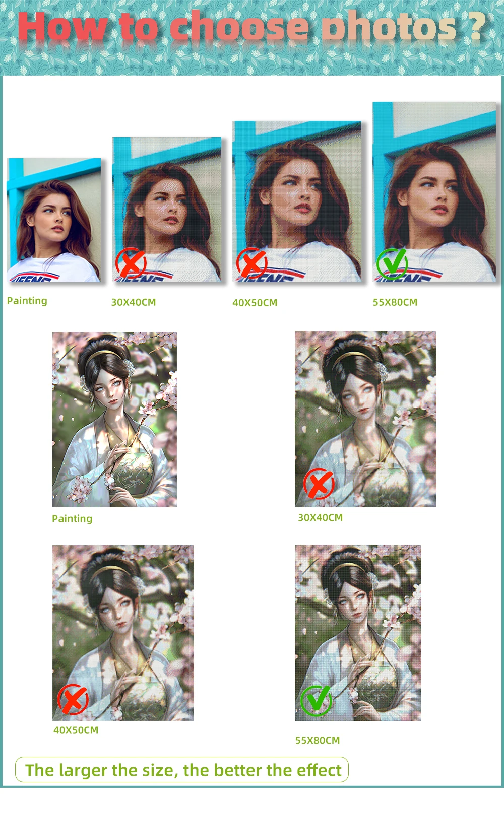 Размер изделия 15x20 см. Это может отличаться от фактического изображения. Если вам нужна четкая фотография, рекомендуется выбрать размер выше 30, эффект будет лучше!