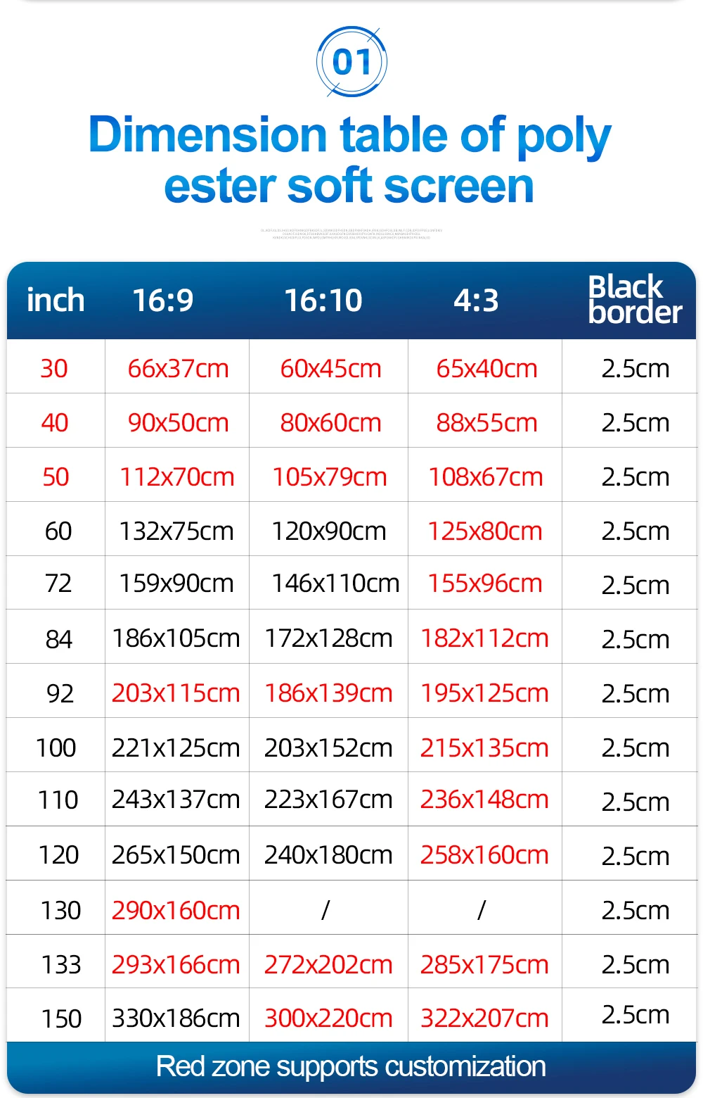 Экран для проектора, 16:9, Full HD, 60 72 84 100 120 150 дюймов