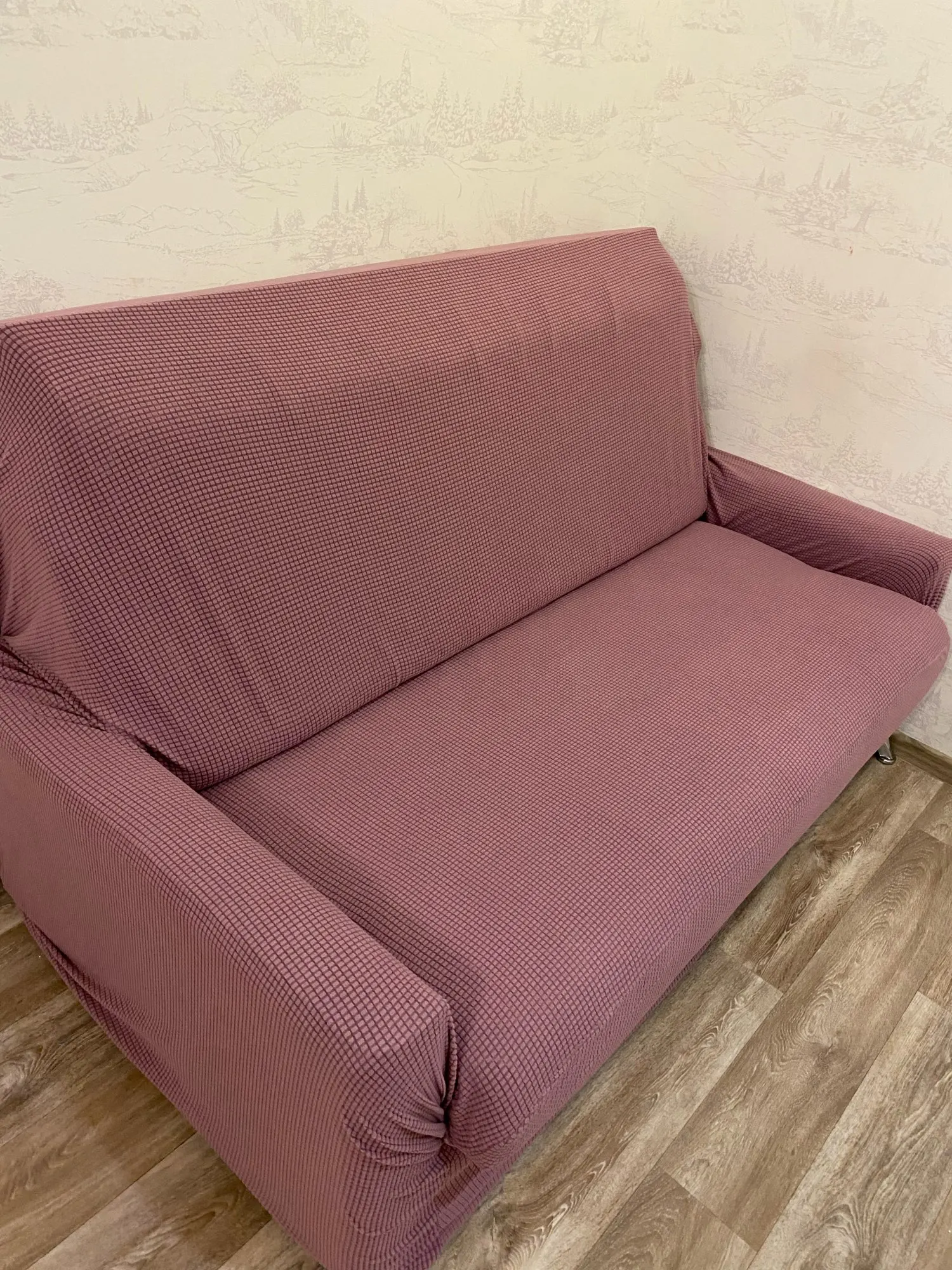 Отличный чехол, но к сожалению цвет не тот, что на картинке. Ожидала пудровый сиреневый, пришел темный. Остальное отлично, надо будет с мужем подтянуть, веревки завязать,думаю сядет как надо