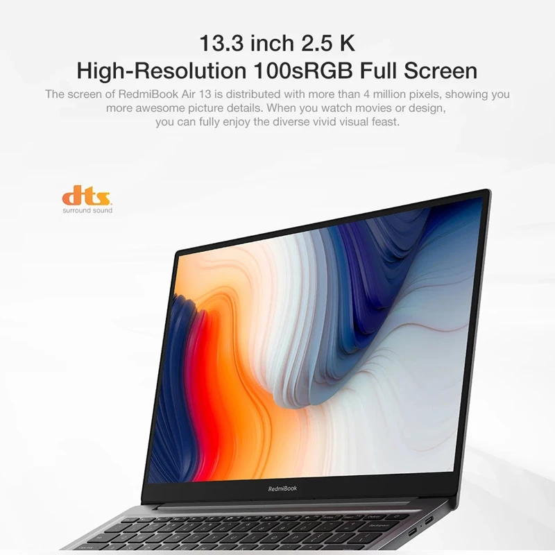 Новое поколение RedmiBook Air 13, который является как светильник как 1,05 кг и очень тонкие, 12,99 мм, меньше, чем журнал и может быть подобраны для девочек одной рукой. Фюзеляж принимает закругленный стальной Пескоструйный процесс, с простым дизайном и тонкой текстурой. 2560*1600 высокое разрешение100% sRGB высокая цветовая гамма (типичное значение)Поддержка затемнения постоянного тока, удобная и приятная для глаз300 нит высокая яркость, 178 ° Широкий угол обзора (типичное значение)