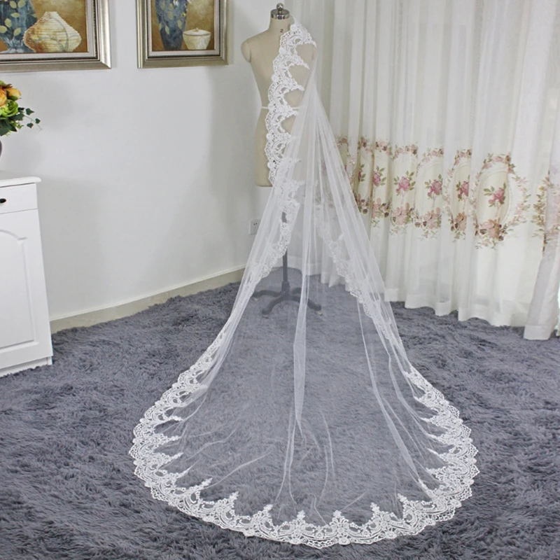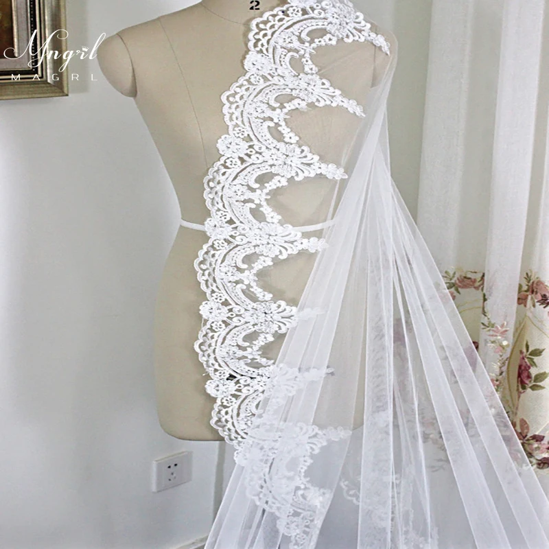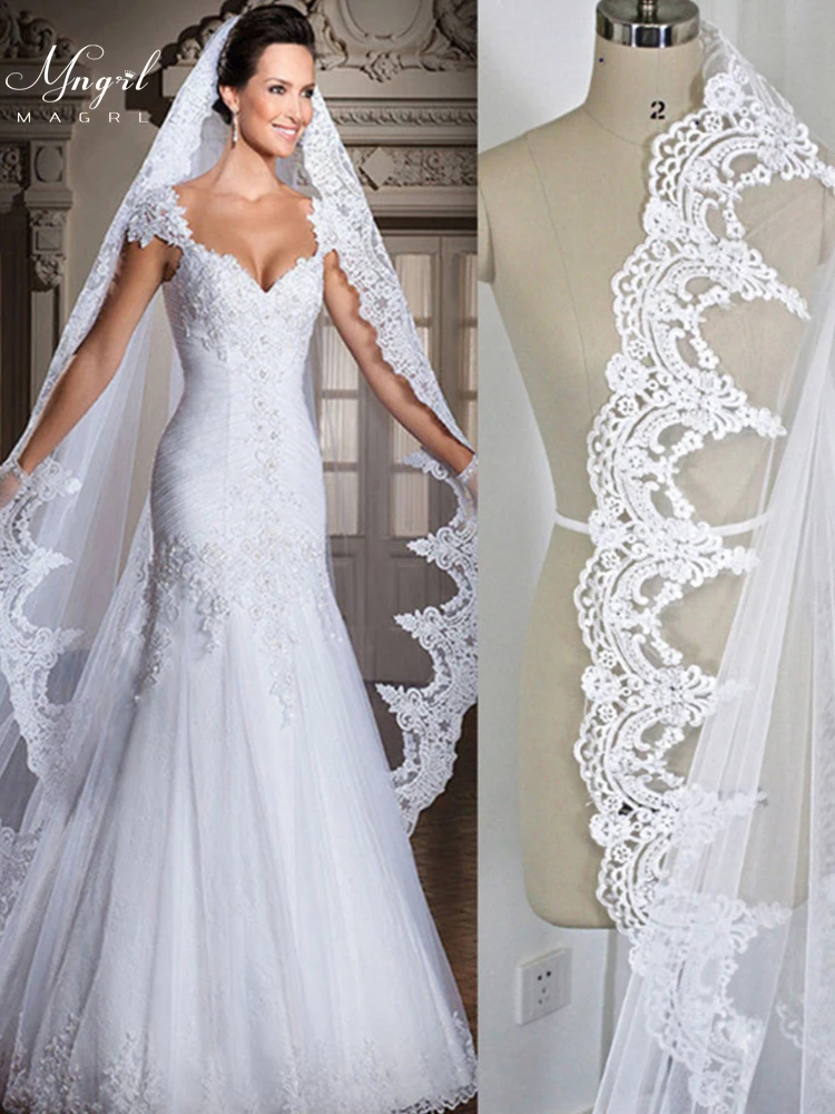 Свадебные аксессуары MNGRL, фата для невесты, головной убор в стиле ретро, роскошная кружевная фата длиной 3 м, однослойная Фата, белая мягкая пряжа