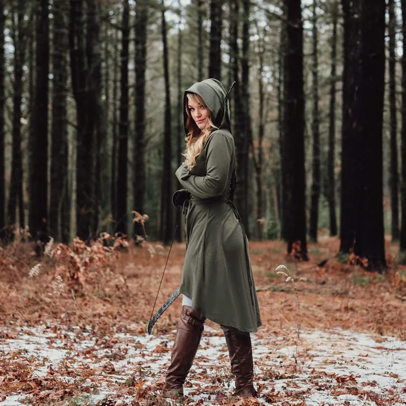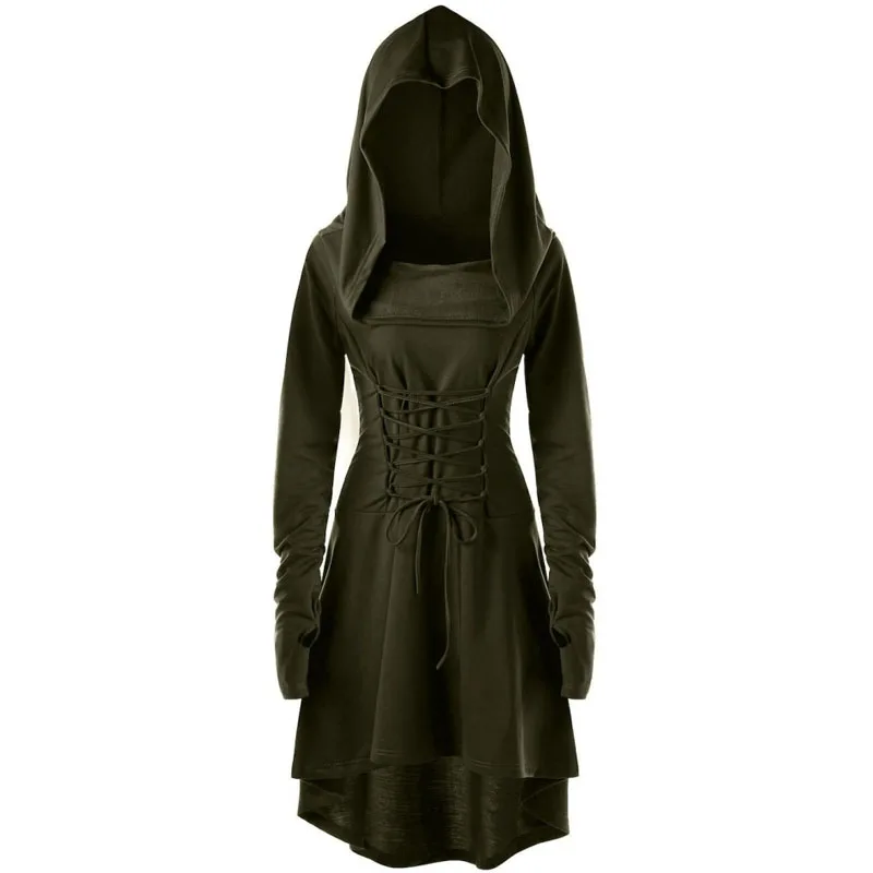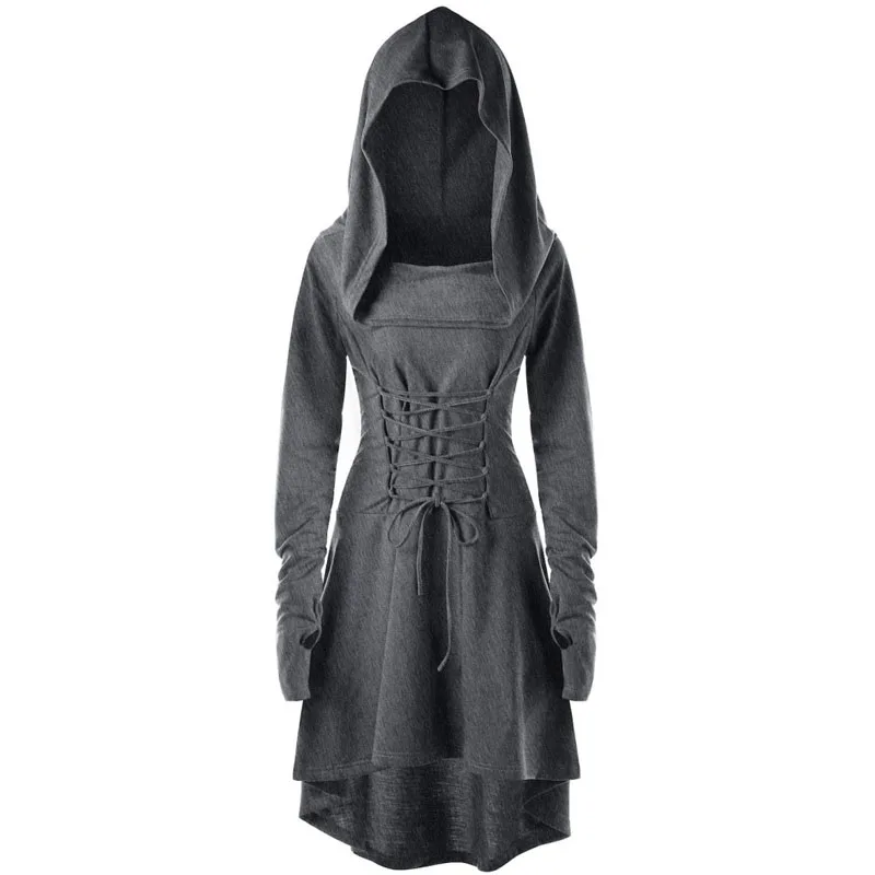 Женские Ренессанс схватки Косплей костюмы халат с капюшоном размера плюс, на шнуровке, Винтаж пуловер длинное платье с капюшоном плащ-накидка на Хэллоуин