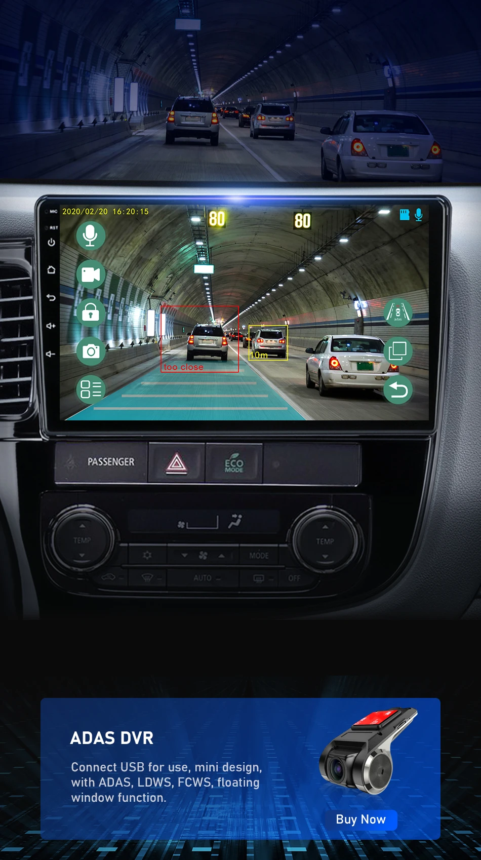 Поддерживает подключение к видеорегистраторУ ADAS. ADAS DVR имеет несколько встроенных ассистивных технологий вождения, вставляя высококачественную карту памяти TF для записи каждого момента вашего вождения.