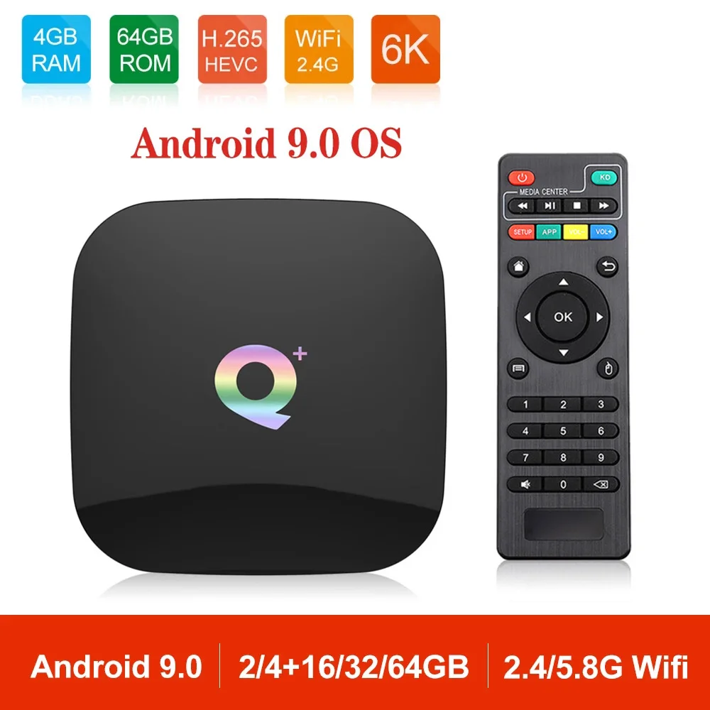 Q Plus Smart TV Box Android 9,0 TV Box 4 Гб RAM 32 ГБ/64 Гб ROM Quad Core H.265 USB3.0 2,4G WiFi телеприставка 4K TV Box медиаплеер