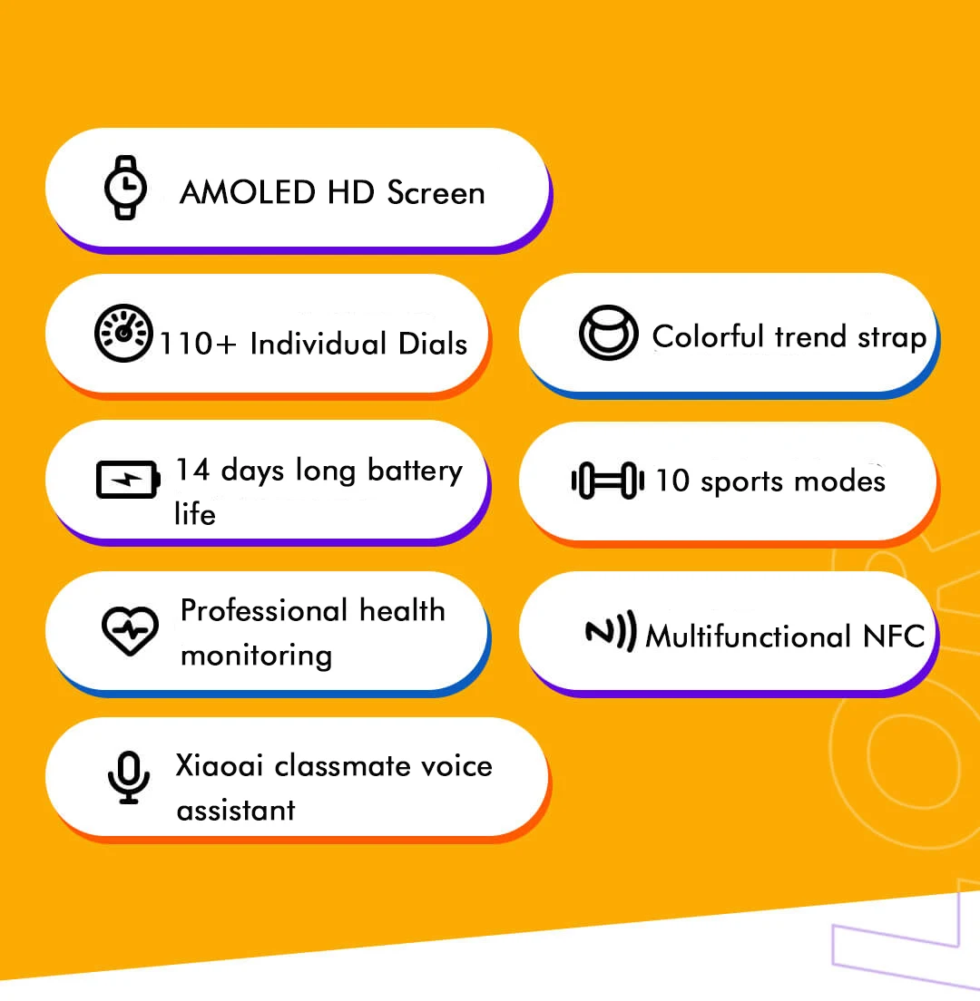 Модель: Xiaomi WatchLauch время: 2019.11.5 экран: 1,78 дюйма, AMOLED, 368x448процессор: Snapdragon Wear 3100 4G Водонепроницаемость: защита для плавания + ПЗУ: 1 Гб + 8 Гбит датчики: A + G сенсор, HRM датчик сердечного ритма, геомагнитный датчик, датчик окружающего света, барометр, датчик оптического смещения OTS навигация: GPS, ГЛОНАСС, BEIDOUSport режим: открытый бег, Уличная ходьба, бездорожье, альпинизм, бег в помещении, езда на велосипеде на открытом воздухе, крытый Велоспорт, бассейн, Открытый плавательный бассейн, Бесплатная активация, здоровое Обнаружение: пульсометр, монитор сна, мониторинг стресса, мониторинг энергии тела, напоминание о стоящей активности, напоминание о малоподвижности NFC: емкость аккумулятора YesBattery: 570 мАч (typ), 560 мАч (min) (стандартная версия) /590 мАч (typ), 580 мАч (min) (Pro Version)eSIM Cart Network: WCDMA B1/B5/B8 LTE-FDD B1/B3/B5/B7/B8/B18/B19/B20/B26 LTE-TDD B39/B40/B41