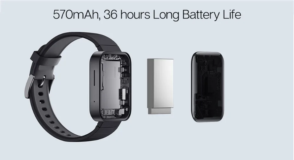 Xiaomi Watch имеет аккумулятор 570 мАч, который поддерживает время использования 36 часов.