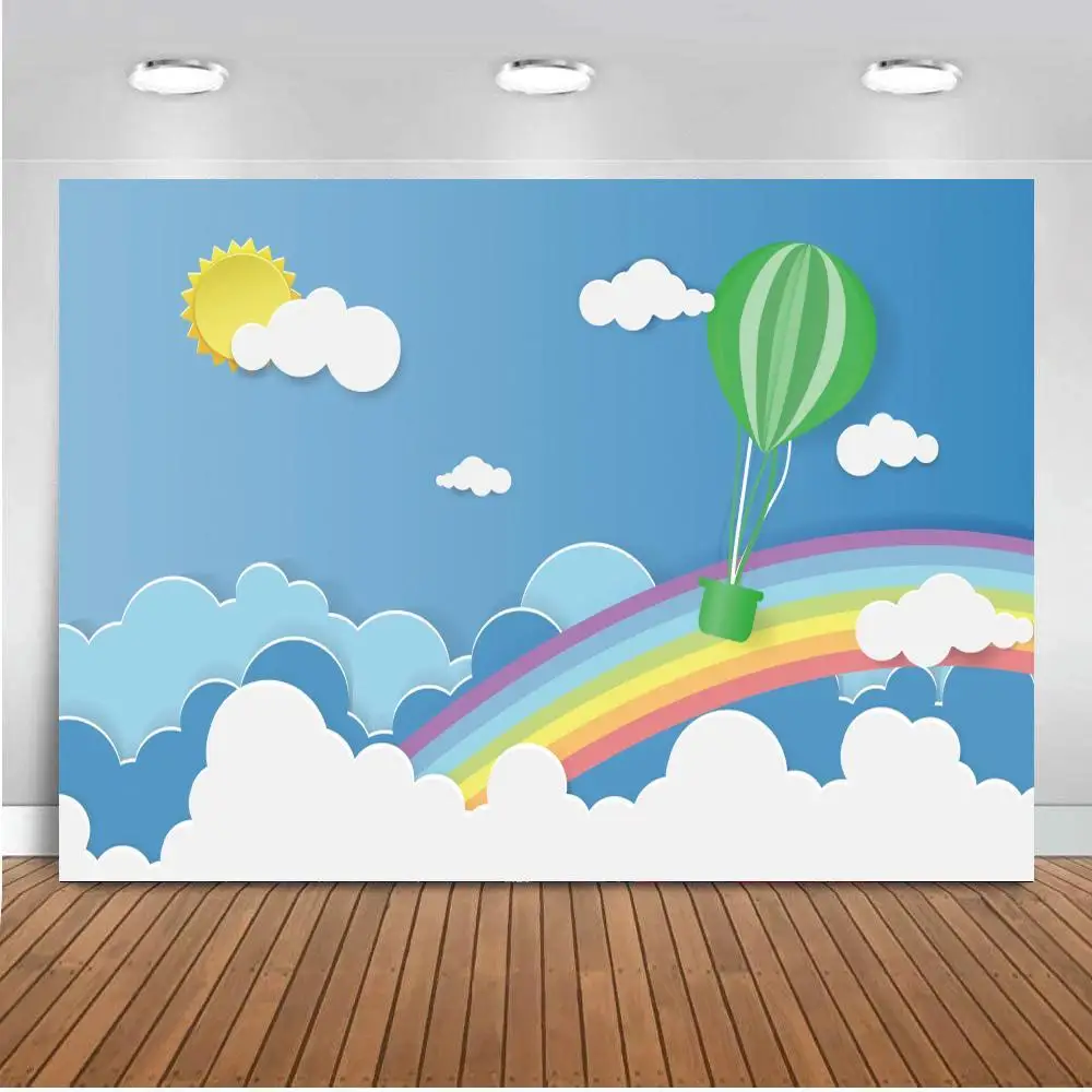 Фотофон для дня рождения с изображением голубого неба и радуги
