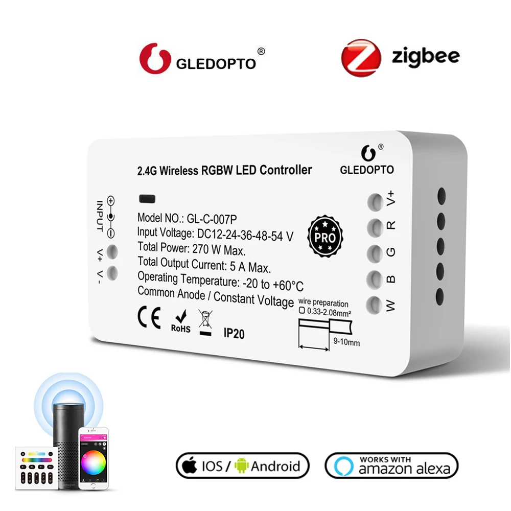 Умный светодиодный пульт управления GLEDOPTO ZigBee PRO 3,0 RGBW RGBWW, дистанционное управление через приложение, голосовое управление, работает с Echo Plus Google Assistant SmartThing H * UE