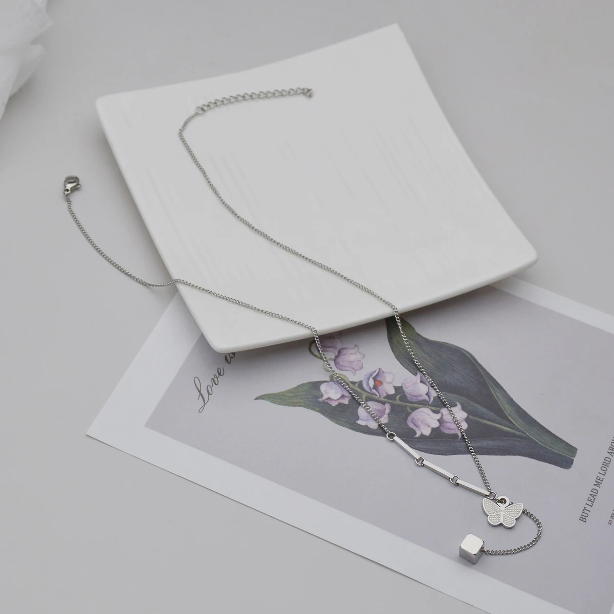UZone Изысканная бабочка квадратная подвеска из бисера колье из нержавеющей стали двухслойная цепочка ожерелья для женщин вечерние ювелирные изделия в подарок