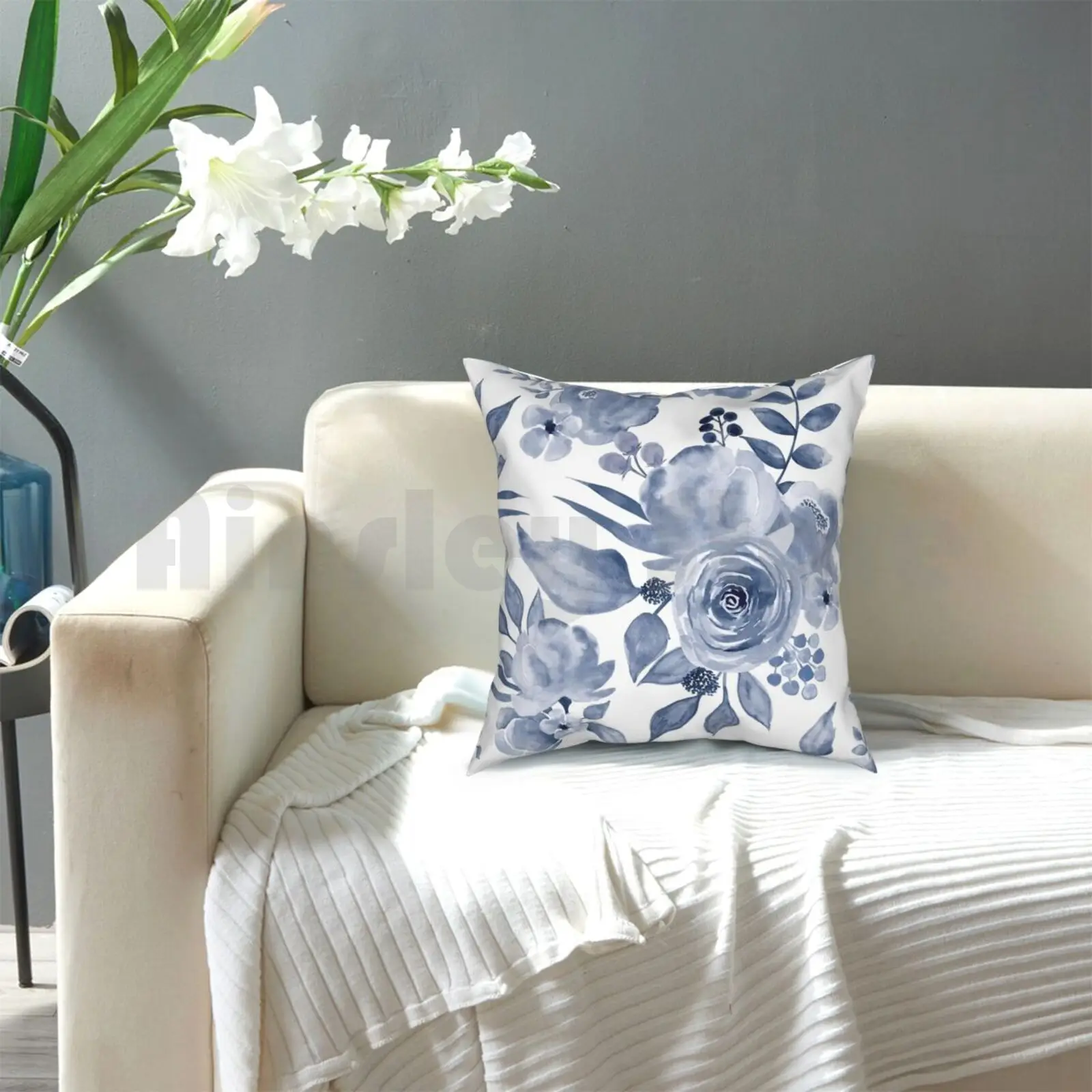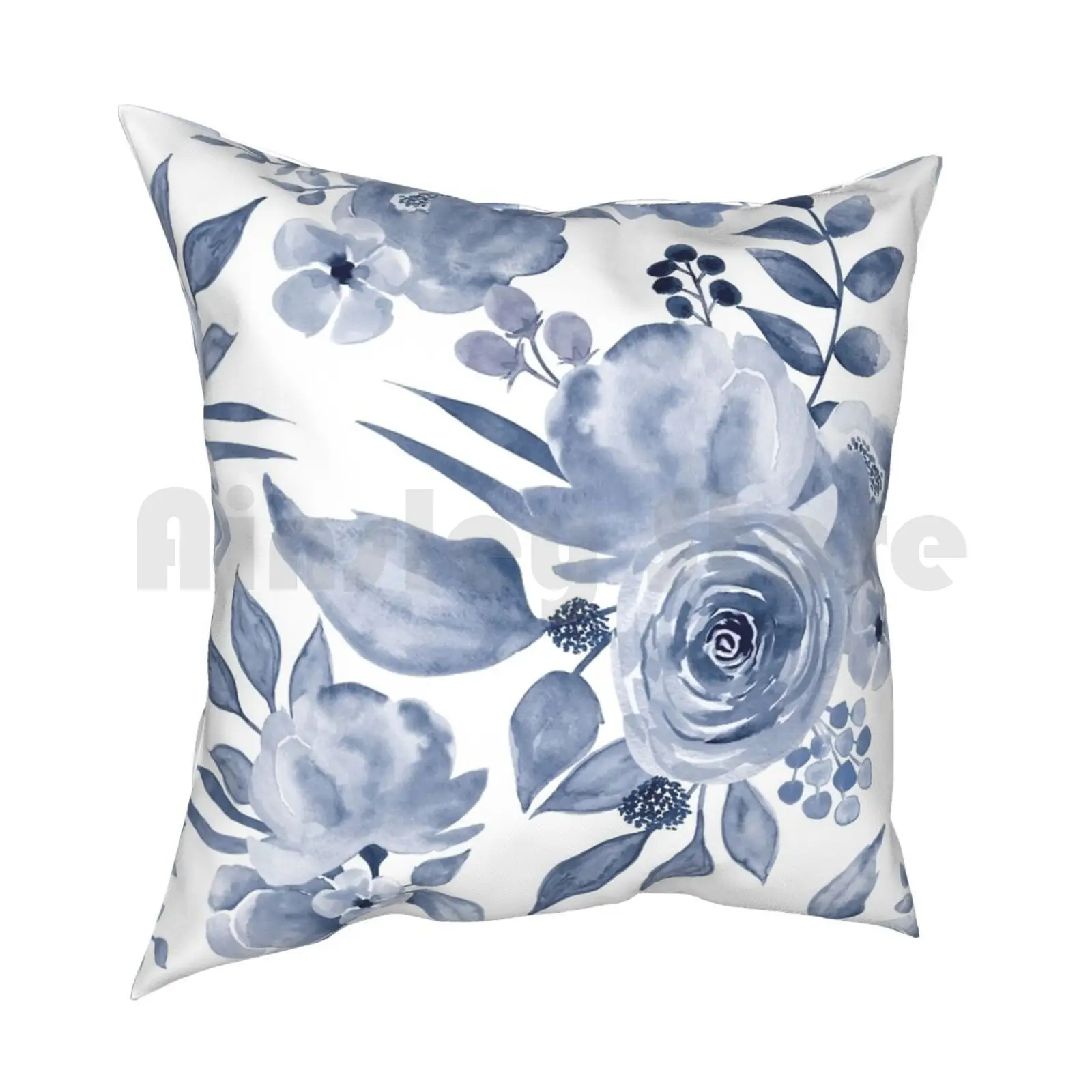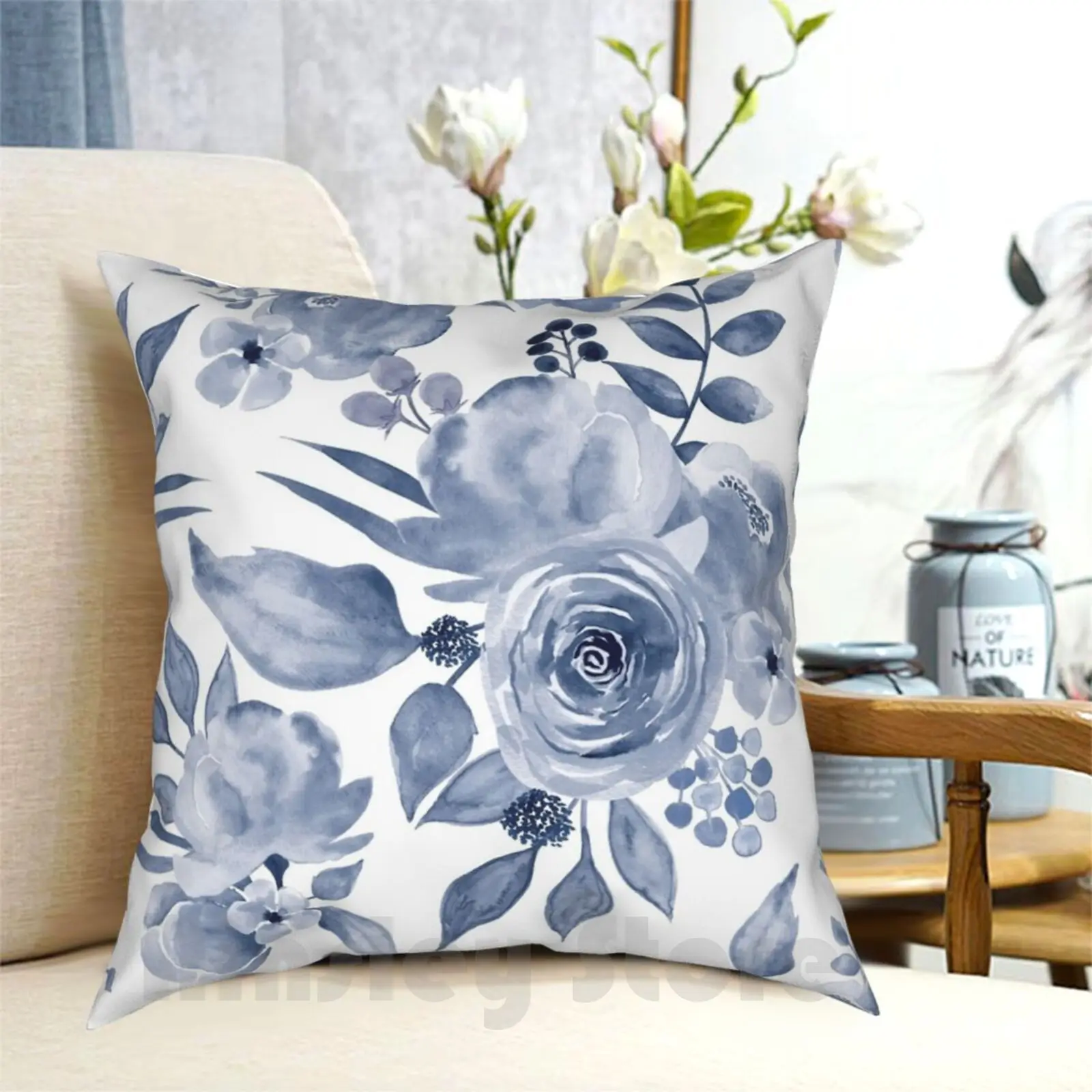 Мягкая подушка Hamptons с цветочным рисунком, домашняя мягкая подушка в стиле Hamptons, синяя Подушка с цветочным рисунком, темно-синий