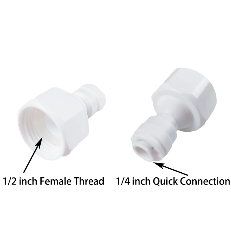 Цвет: белый Размер: 1/2 ''Женская резьба X1/4'' быстрое подключение Варианты Применения: система воды RO или система запотевания Рабочее давление: 2-20 кг давление водопроводной воды