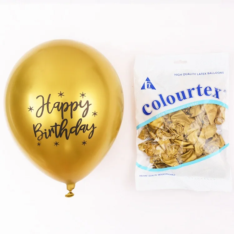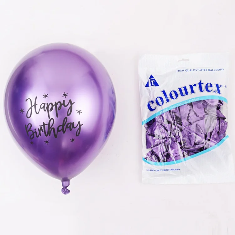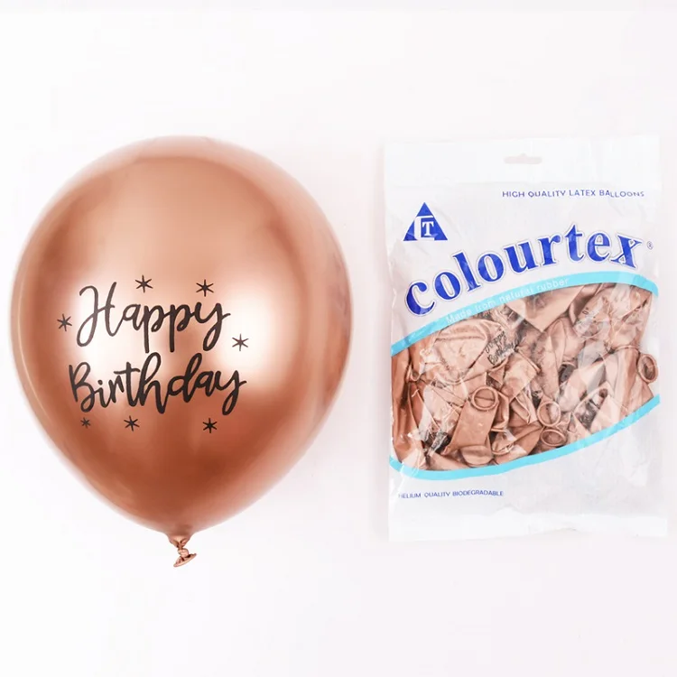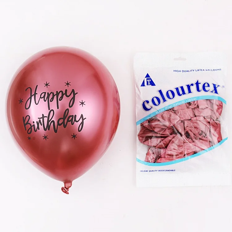 Воздушные шары хромированные, латексные металлические, с принтом на день рождения, 12 дюймов