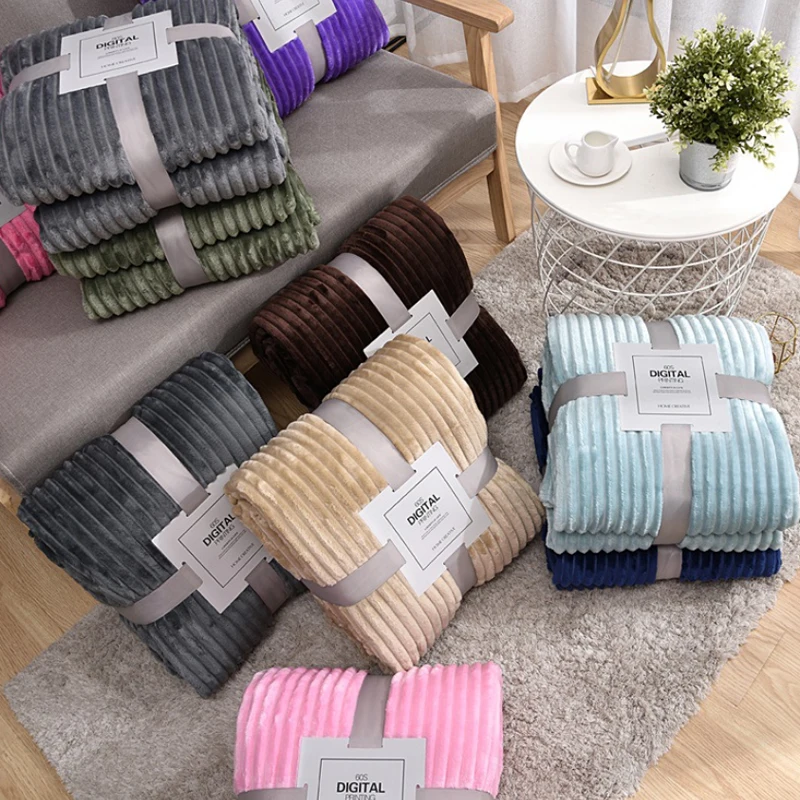 Одеяла для кроватей Однотонное полосатое одеяло из кораллового флис...