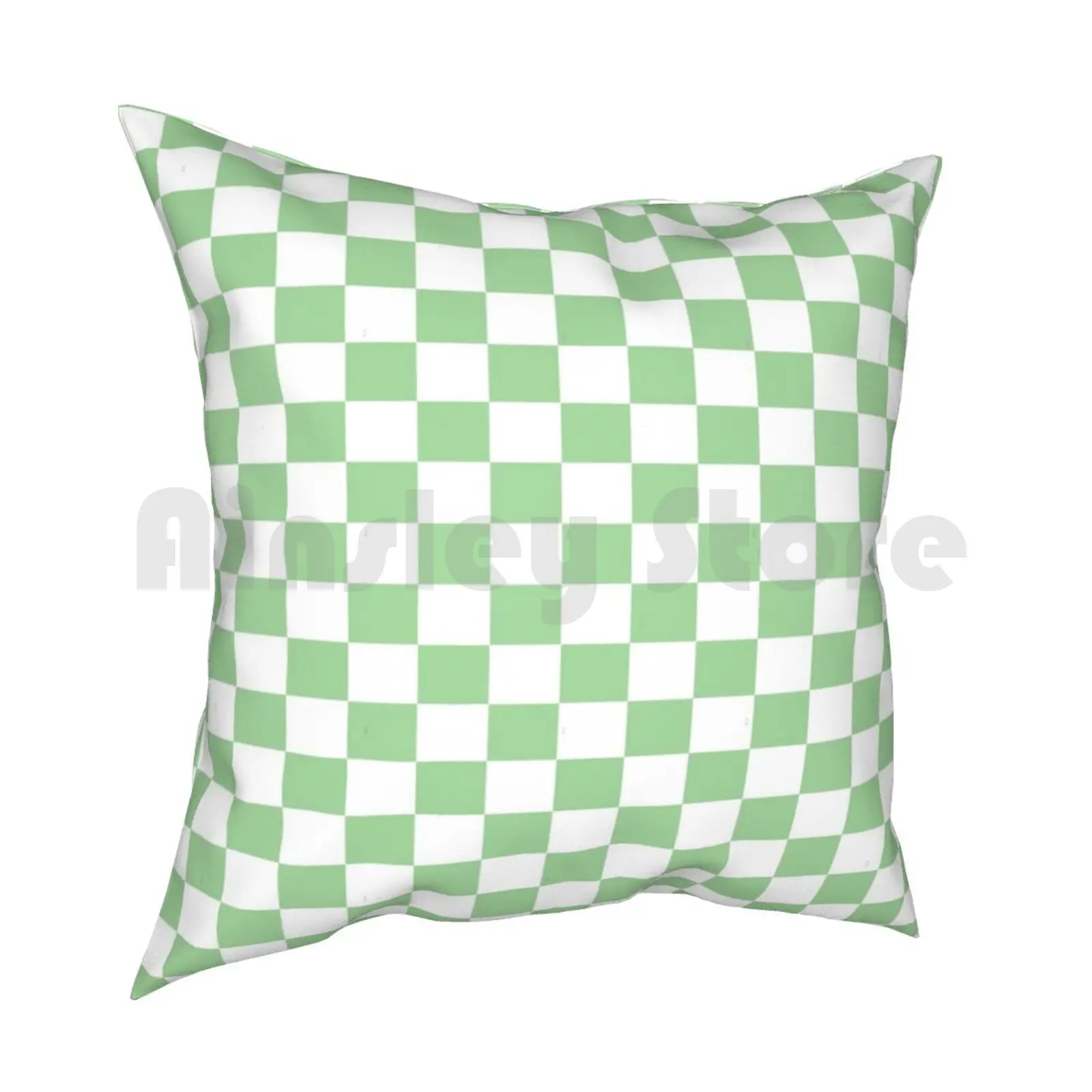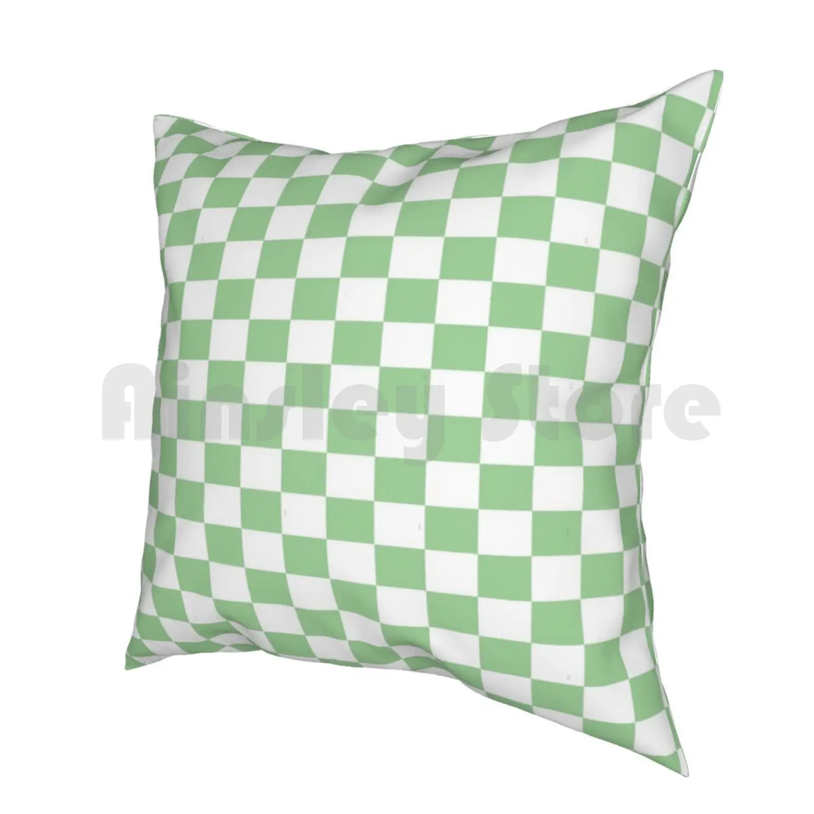 Зеленая Шахматная подушка, чехол с принтом, домашняя мягкая декоративная подушка, зеленая шахматная клетка, милая красота, эстетика Vsco