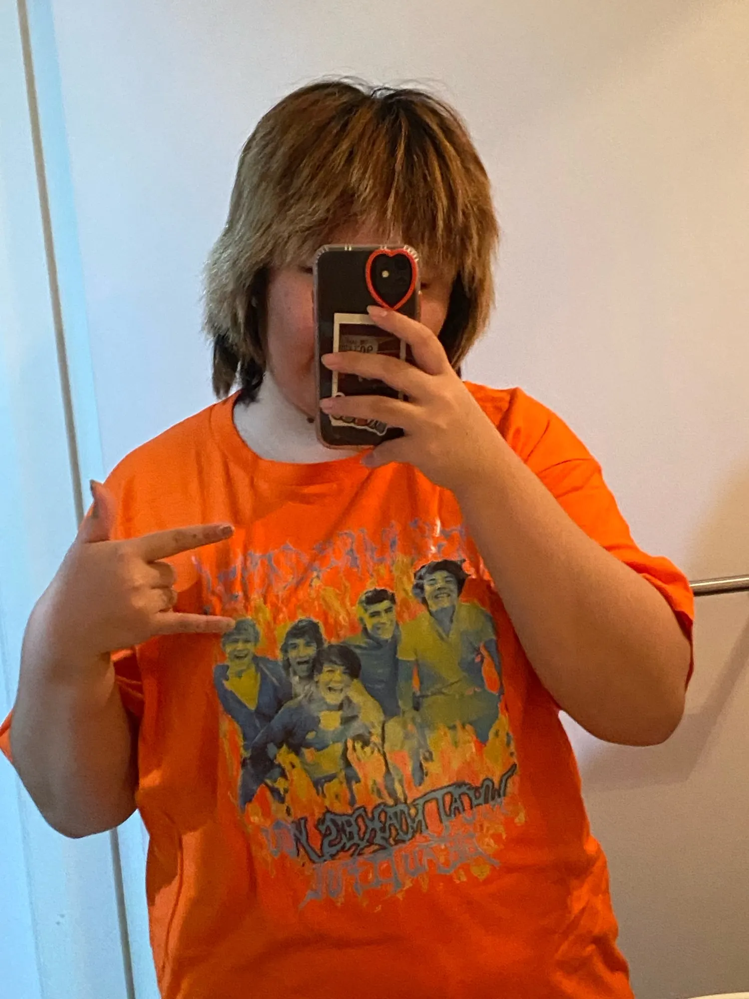 Футболка мужская хлопковая оранжевая с круглым вырезом и графически...