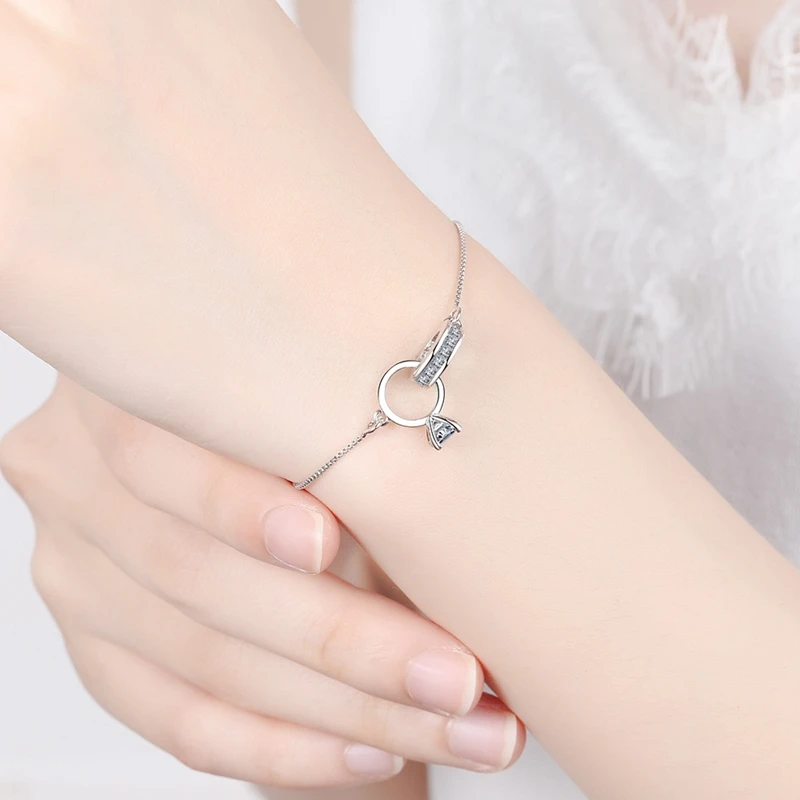 Женский браслет из чистого стерлингового серебра 925 пробы с белым ...
