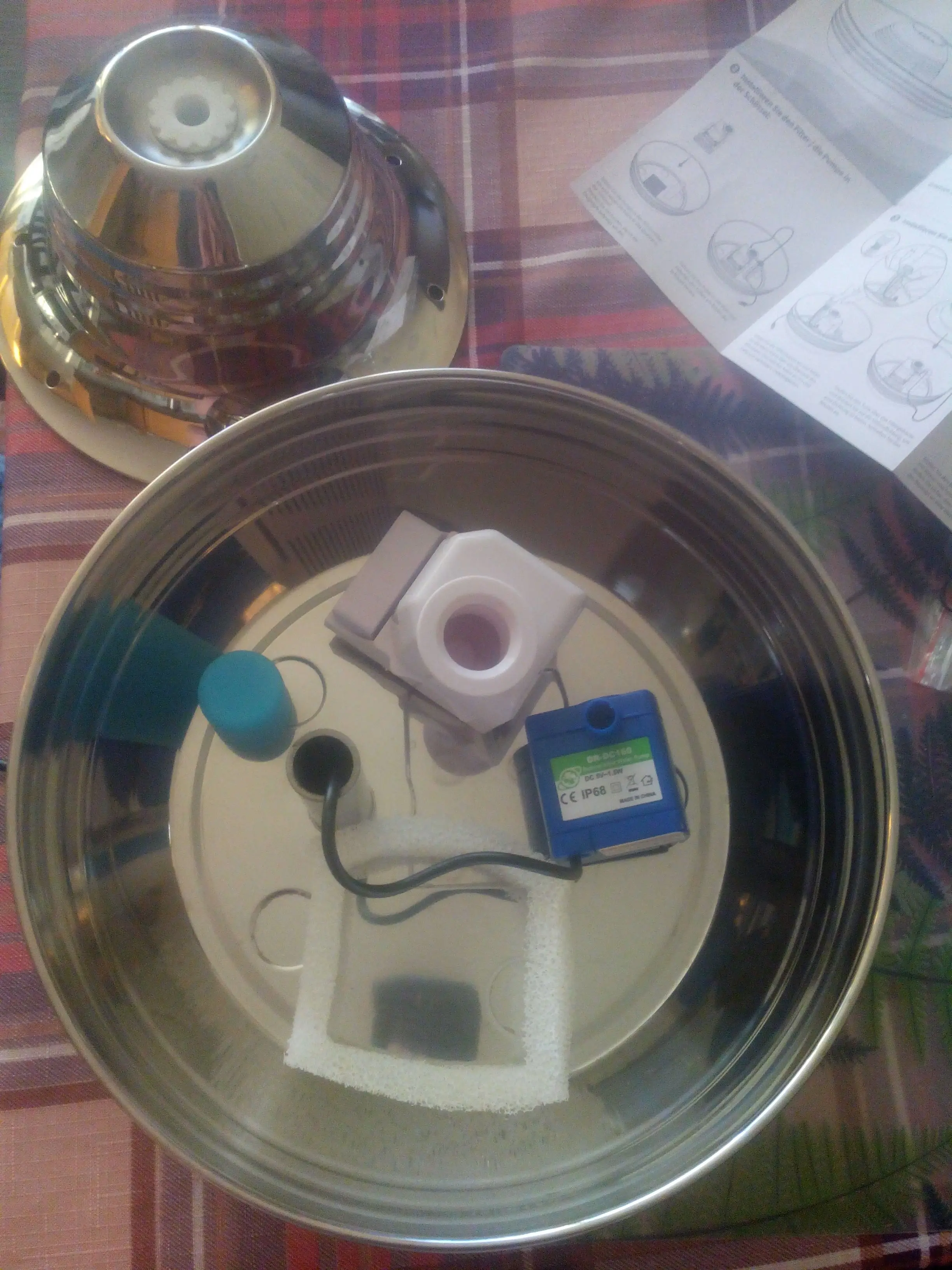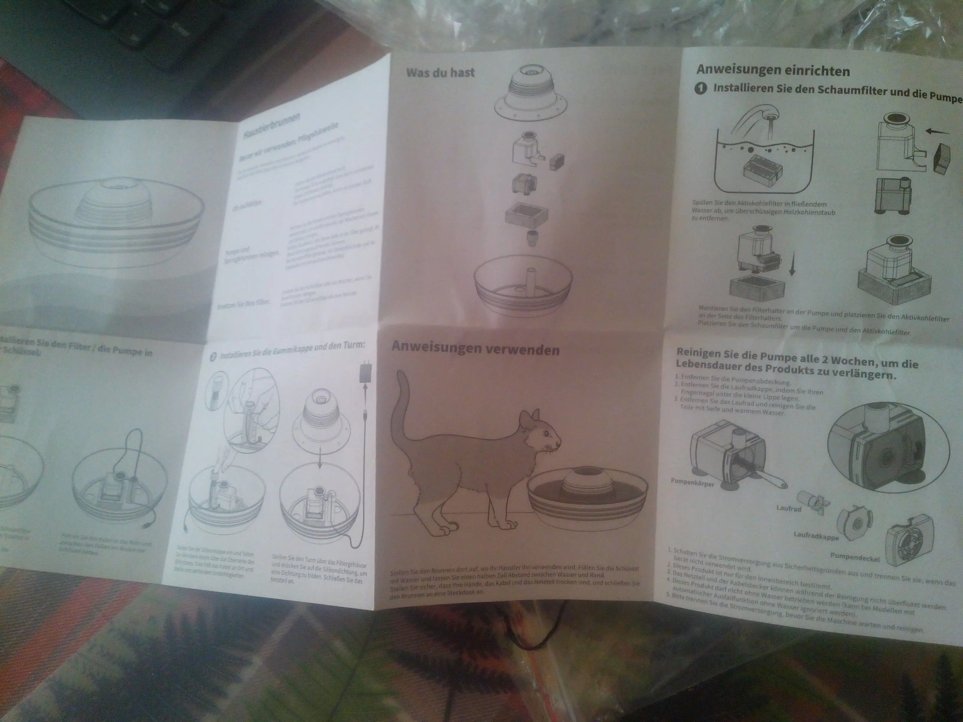 Для удаления абразивного материала из нержавеющей стали потребуется некоторое время. Силикон был дезинфицирован в кипящей воде после стирки. Было трудно удалить этикетки на водяном насосе. Тихий, почти без шума, изготовлен из нержавеющей стали и силикона. Есть водяные фонтаны и лужи, поэтому кошки могут выбирать в соответствии с их вкусом. К сожалению, отделка трубы и запах железа.