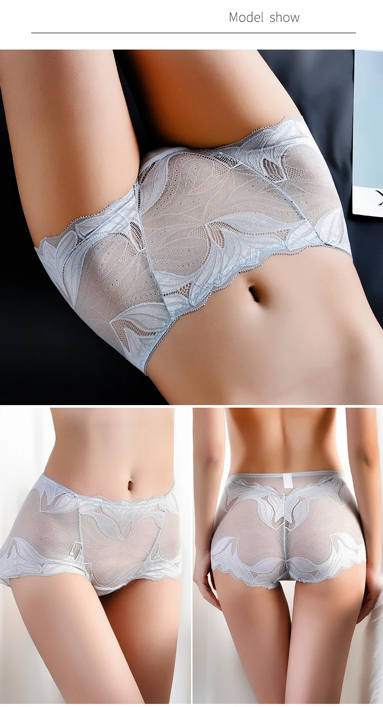 Трусы женские кружевные прозрачные из хлопка, со средней посадкой