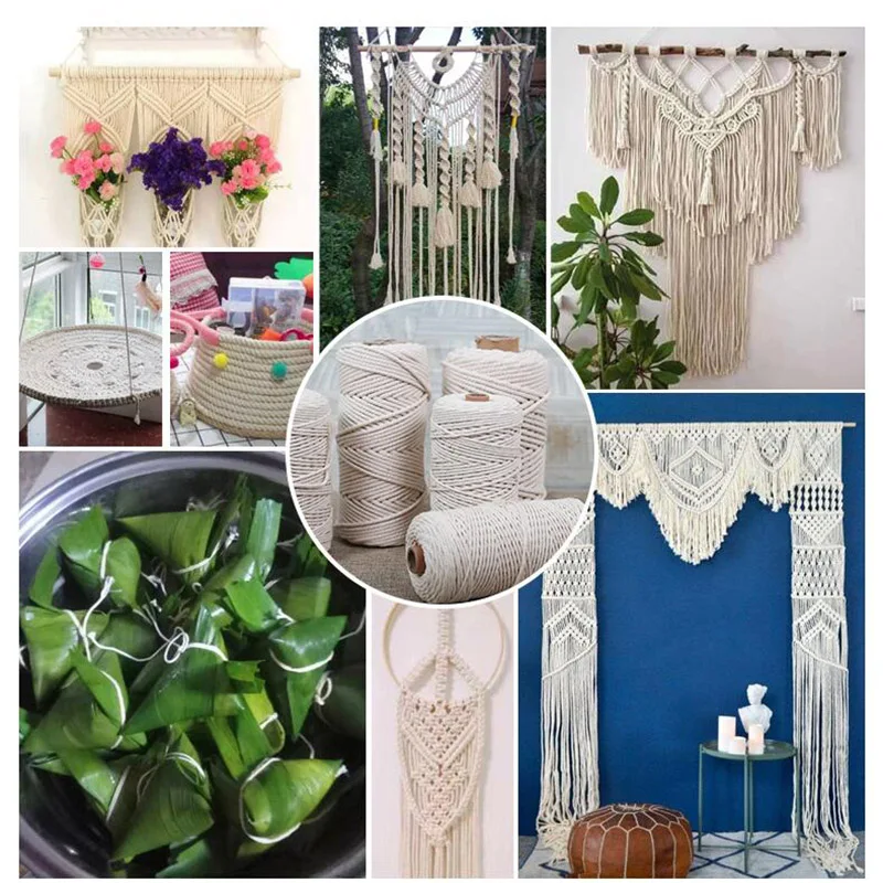 Плетеная веревка макраме, хлопковый шнур 3 мм, 4 мм, 5 мм, 6 мм для...