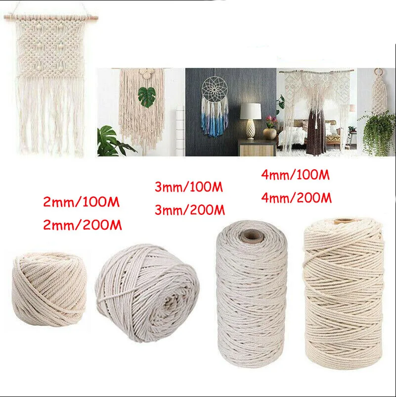 Шнур для макраме из 100% натурального хлопка, 100200400 м, 1-3 мм