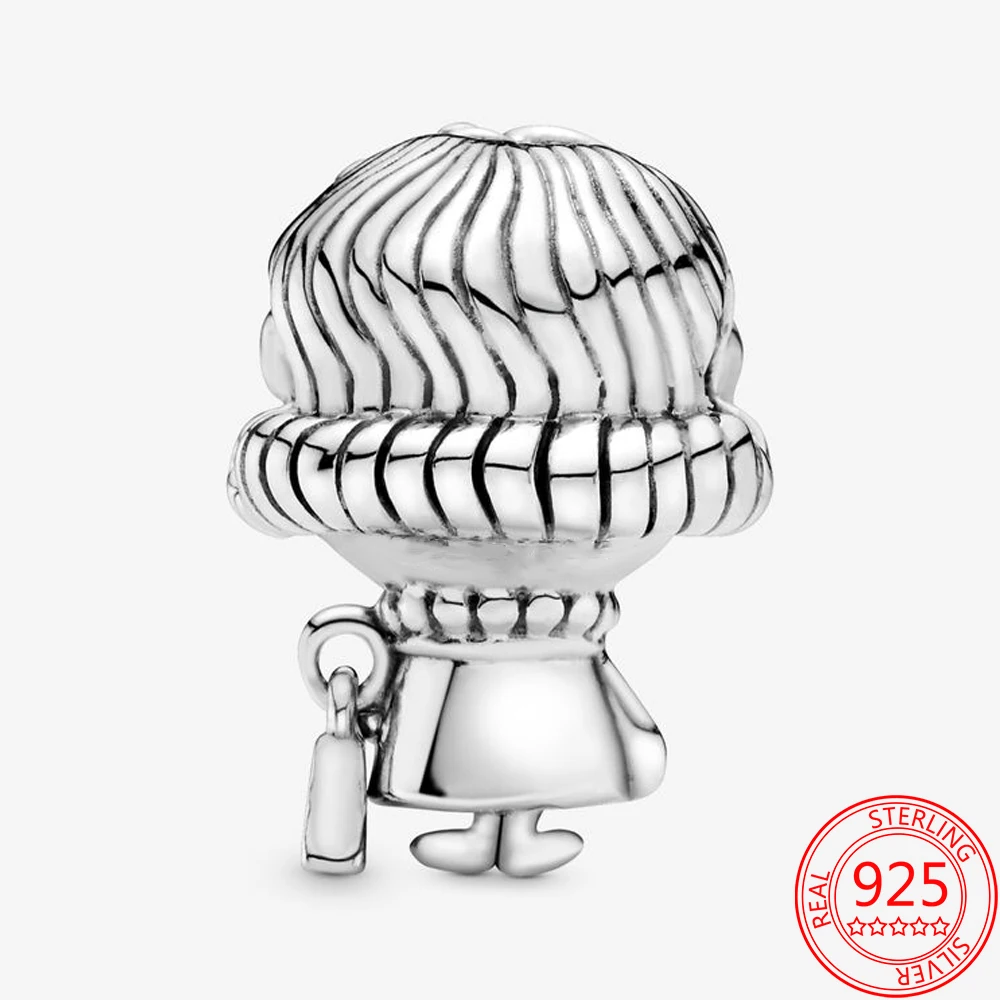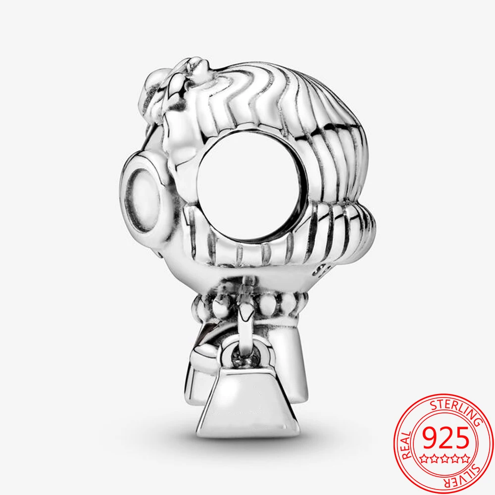 Подлинные искусственные серебристые и розовые эмалированные кудрявые волосы, бабушка, шарм, подходит для браслета Pandora, сделай сам, подвеска